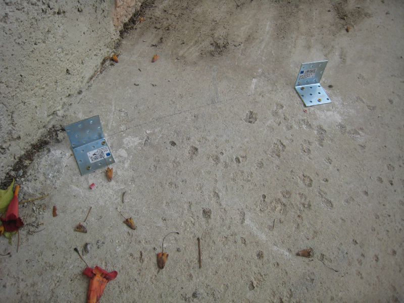 Pour réaliser la poutre cintrée, j’avais besoin d’un outillage, j’ai tracé un rayon sur le sol en béton de ma terrasse et j’ai fixé des équerres directement sur le sol