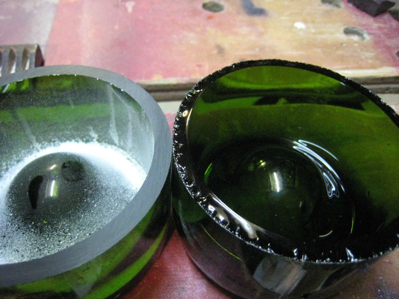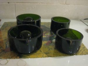 Si cela ne vient pas il faut recommencer. Il y a une part d’aléas, cela ne marche pas à tous les coups. Sur cette série, j’ai coupé 13 bouteilles et seulement 2 ne se sont pas coupées bien circulairement.