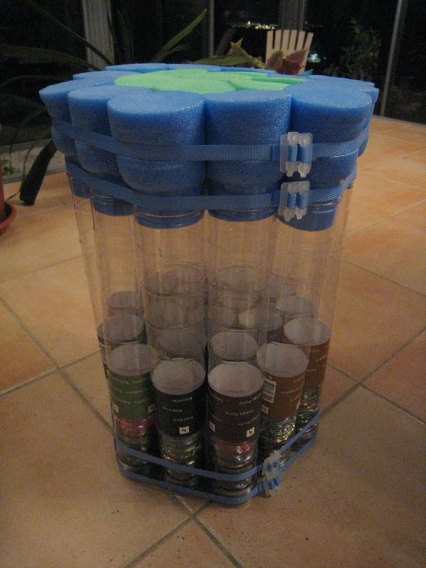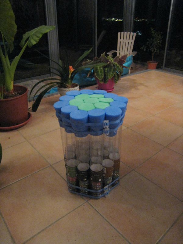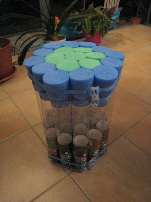 Comme le fond des tubes est un peu mince, je les ai renforcés en coupant la partie supérieure d’un tube plus épaisse et en l’enfilant sur le fond, il a donc fallu 19 autres tubes.