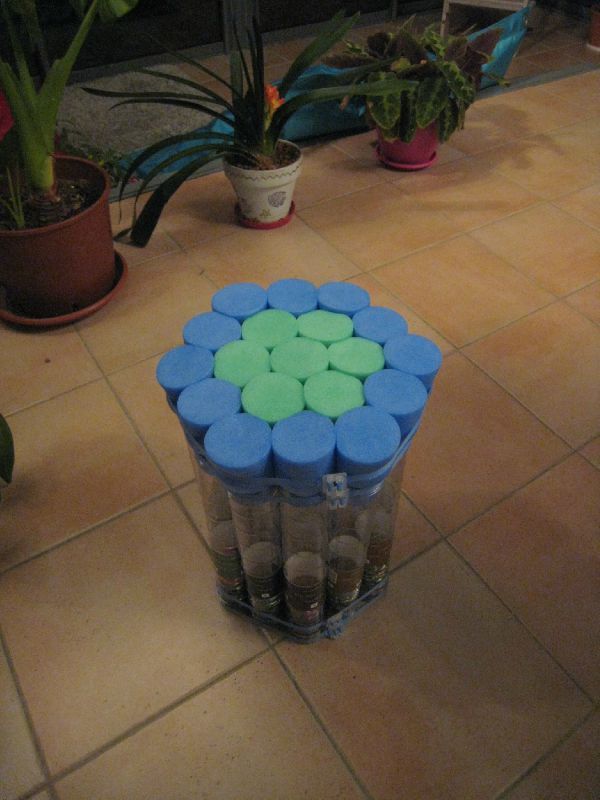 Je réfléchissais à quoi faire avec ces tubes et j’ai finalement réalisé un pouf que je vais offrir à Morgane pour son anniversaire. Si il résiste à la soirée, c’est qu’il aura passé le test de résistance et d’endurance, on verra bien.