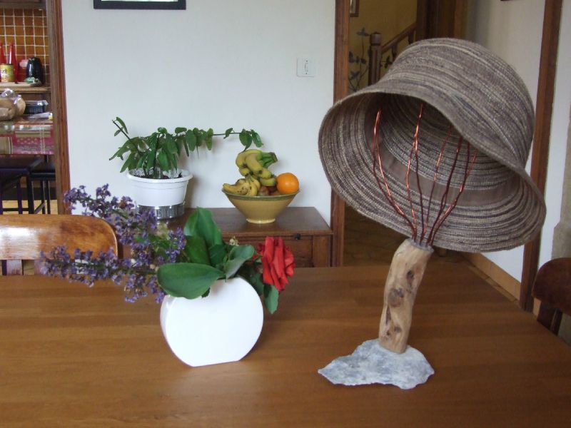 Comme l’objet était posé sur un meuble dans l’entrée…elle en a trouvé un autre usage: un support de chapeau….