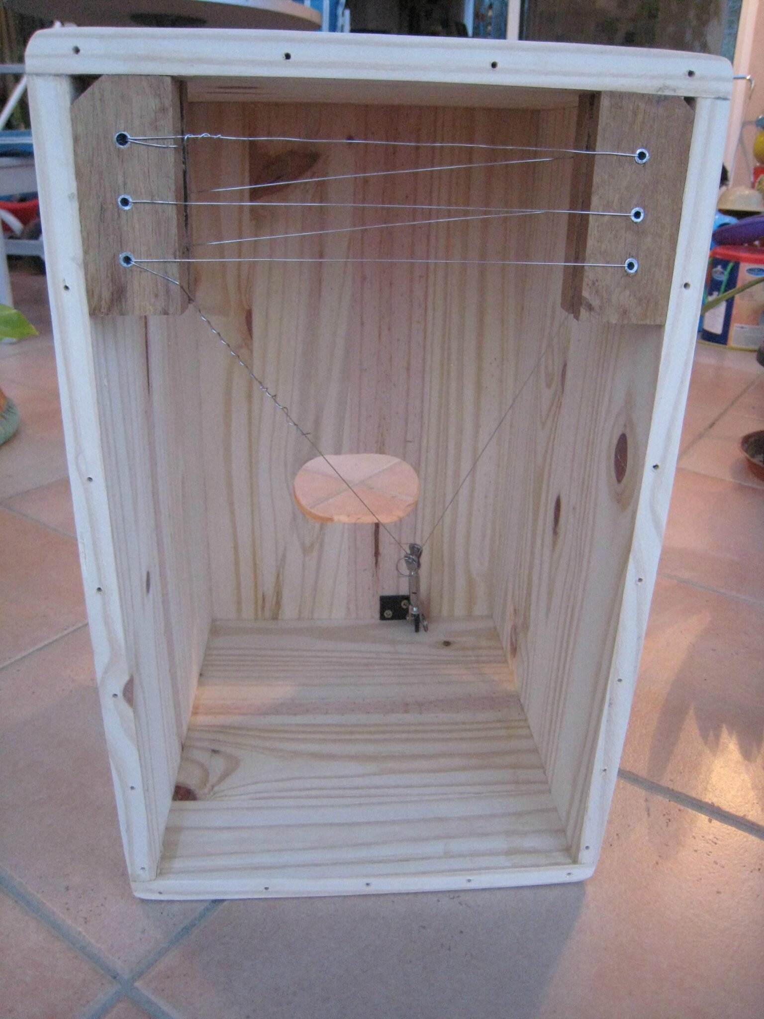 Ce n’est pas vraiment difficile à fabriquer, il suffit de faire une caisse en bois collée, du coup je n’ai pas fait de photo de la construction.