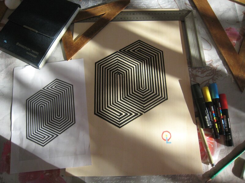 Je l’ai décorée avec un graphisme qui pique les yeux comme dirait Fred. Je l’ai dessiné avec un Posca noir et de la patience, je dirais même que la patience était plus importante que le Posca noir. J’ai eu un peu de mal à faire régulier, mais de loin cela fait l’effet.