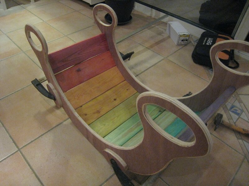 Ce site est très bien fait, il montre comment une jeune femme Becky a réalisé ce Rainbow rocker inspiré de celui du commerce.