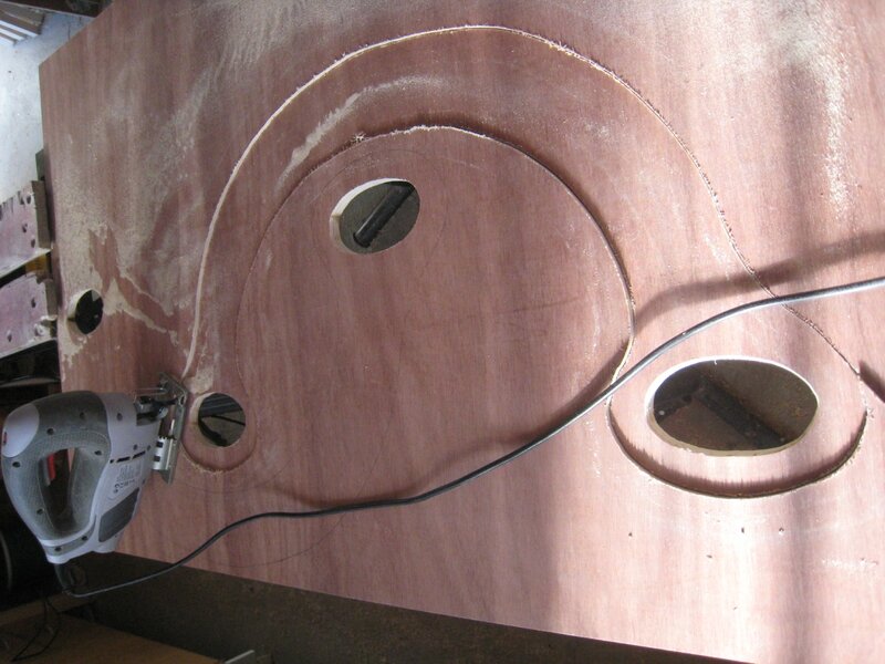 J’ai découpé le contreplaqué de 18 mm à la scie sauteuse en commençant par les trous comme le conseille Becky, et j’ai ensuite arrondi les arêtes à la défonceuse.