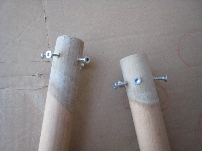 – des vis dans les extrémités des pieds pour mieux les ancrer… mais comme elles étaient un peu hautes ils a fallu mettre pas mal de béton, et les tabourets sont un peu lourds.