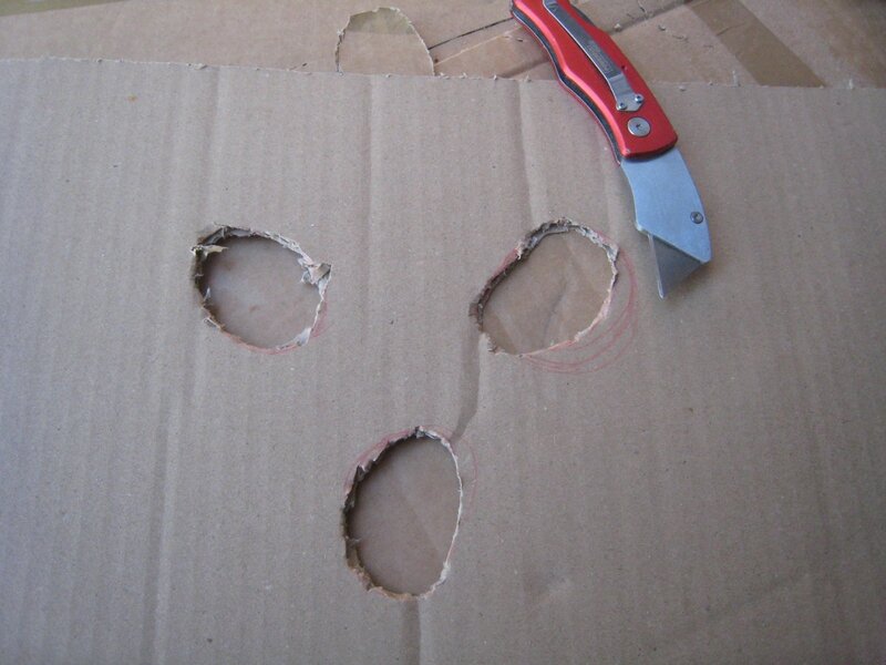 – des gabarits en carton pour positionner les pieds…. mais ce n’a pas été parfait, un des tabourets n’est pas très stable.