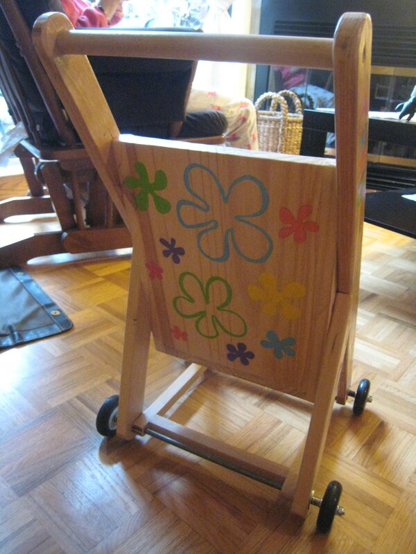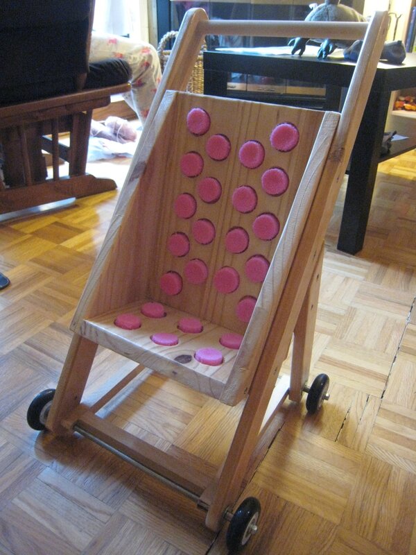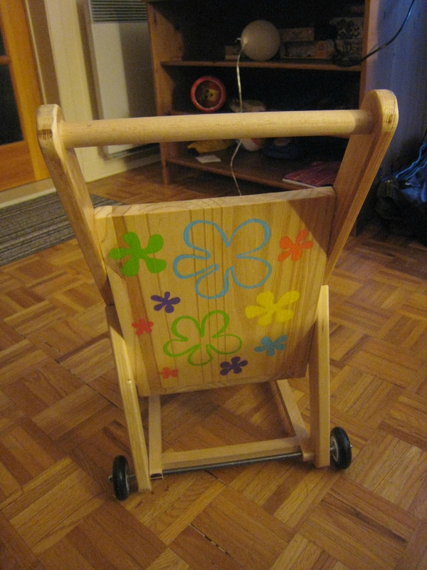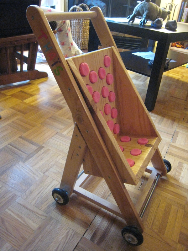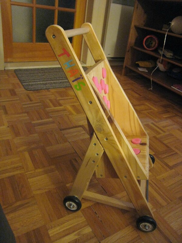 Nouos sommes allés à Montréal voir Thomas Sasha et Thais et j’ai fait un jouet pour Thais: une poussette en bois.