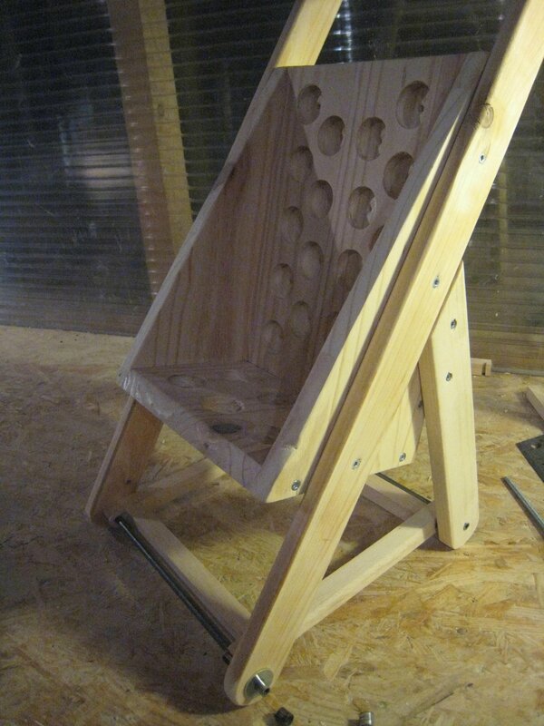 L’assise en bois ne présente pas de difficulté, comme c’était un peu lourd j’ai fait des trous…et ensuite il a fallu trouver une idée pour les trous…