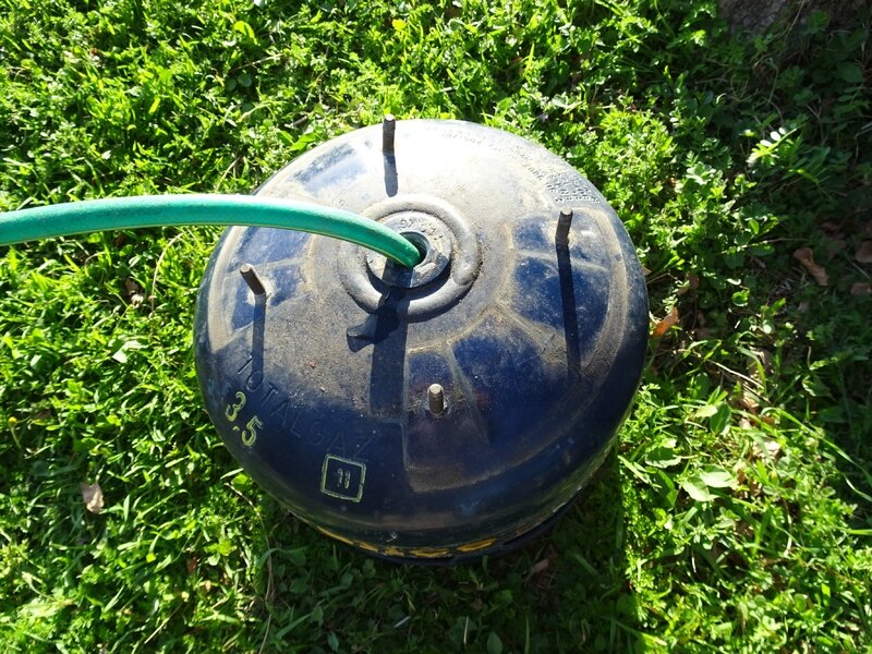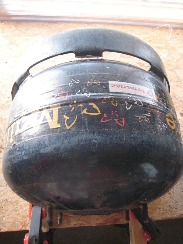 J’ai utilisé une bouteille de gaz de 6 kg, sans vouloir faire de publicité, il s’agit de la malice de Total.