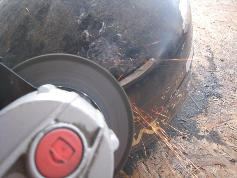 L’étape suivante est de découper l’embase et de meuler les soudures qui dépassent.