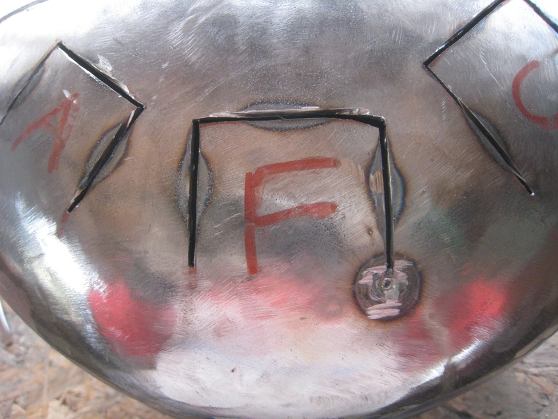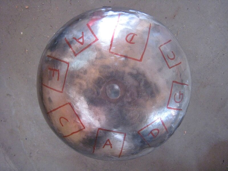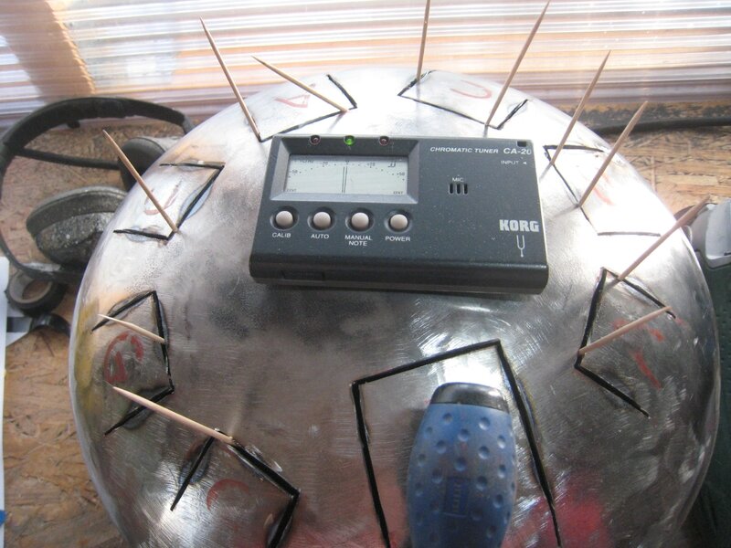 Pour l’anniversaire de Romain, je me suis lancé dans un projet auquel je pensais depuis un moment: un tank drum réalisé à partir d’une bouteille de gaz. Il s’agit d’un instrument à percussion, on tape des lames métalliques découpées dans la calotte d’une bouteille de gaz, et le corps de la bouteille agit comme un résonateur, cela donne un son très zen.