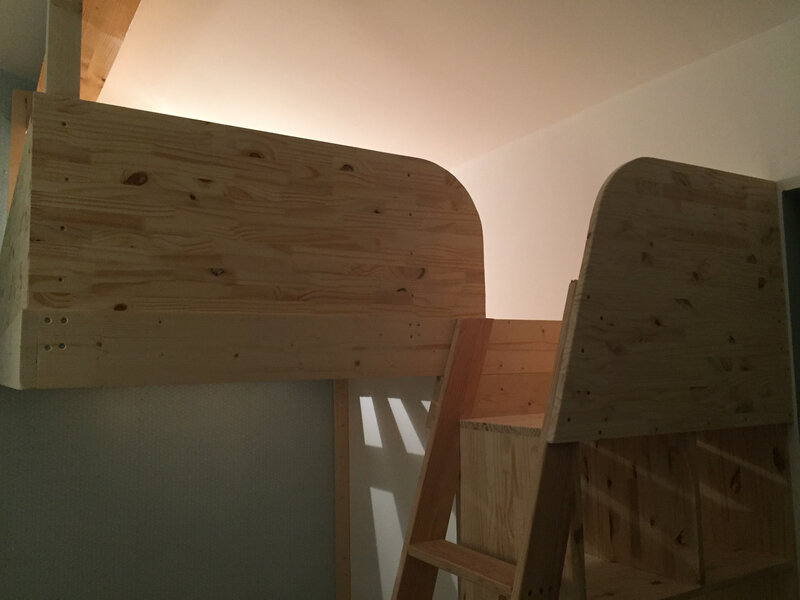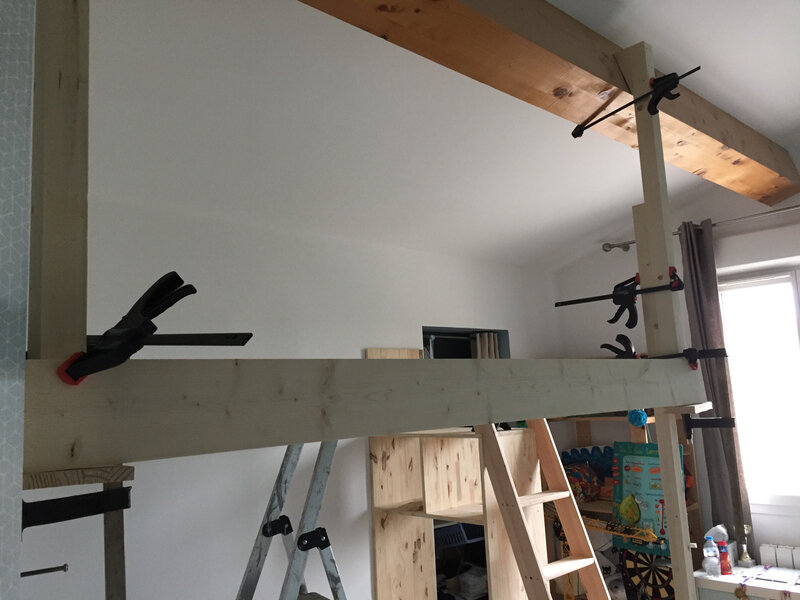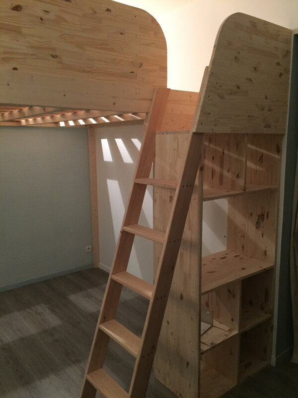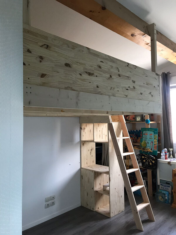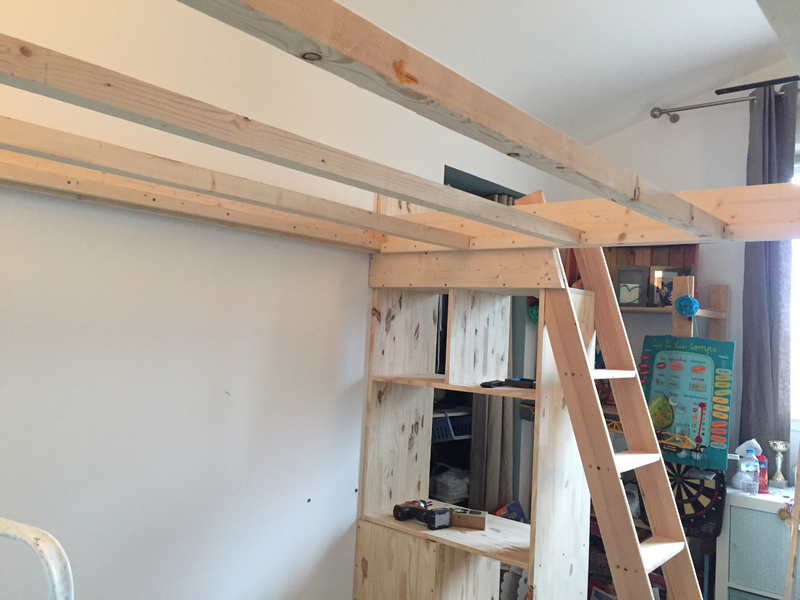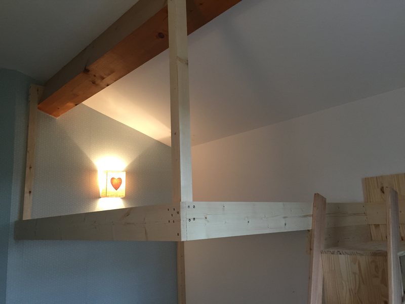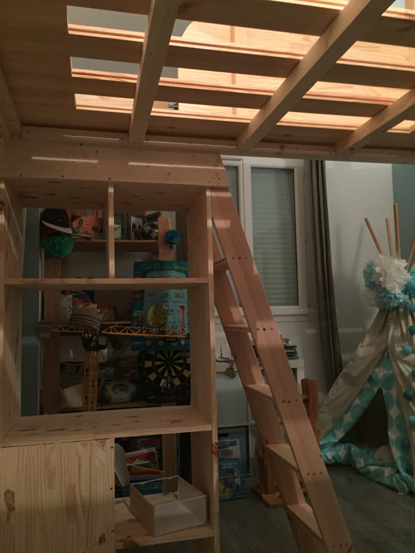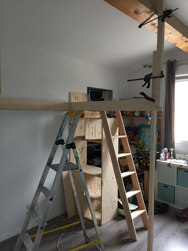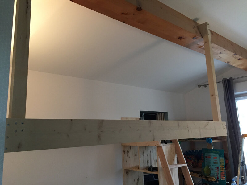 Muriel et Sylvain voulaient une mezzanine pour la chambre de Léon. Ils ont fait quelques recherches sur pinterest, et les magasins de meuble.. et j’ai remporté le marché…