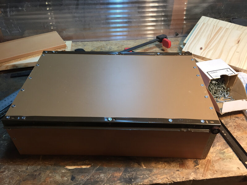 Voici le caisson fini, le coté qui dépasse servira à fixer un coté du lit.