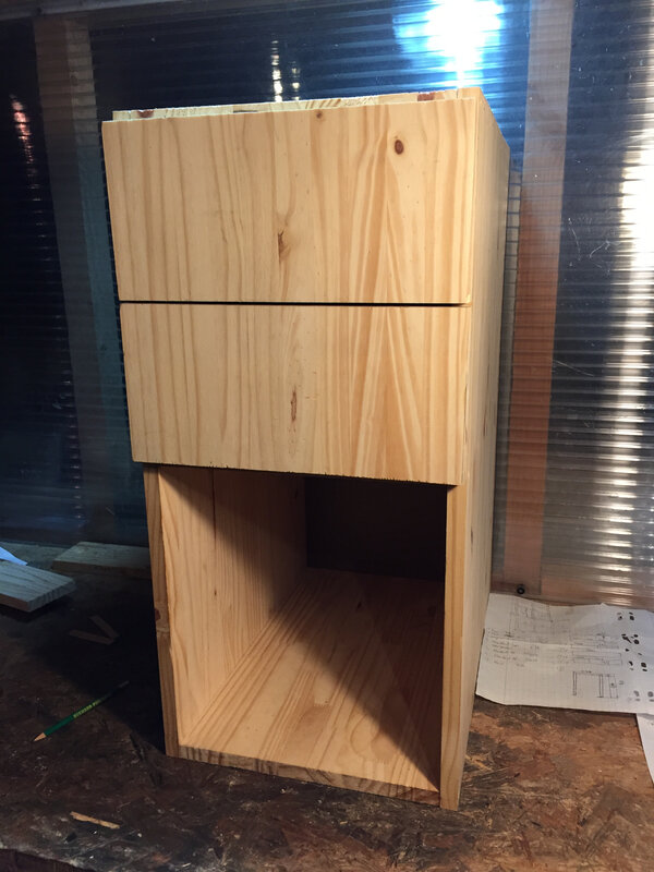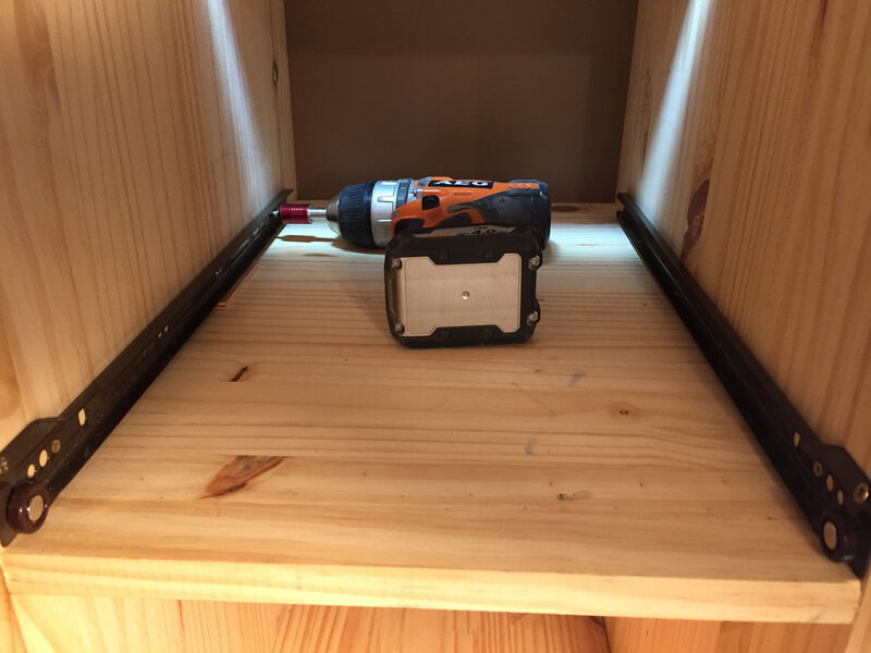 J’ai aussi fabriqué les tiroirs avec des chutes de bois plaqué.