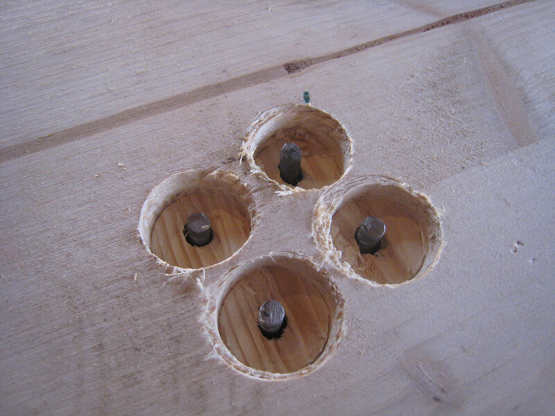 Pour fixer l’assise, j’ai percé 4 trous dans la bride, et j’ai soudé (grossièrement) 4 goujons.