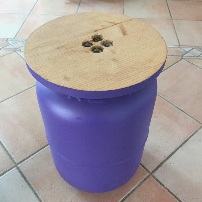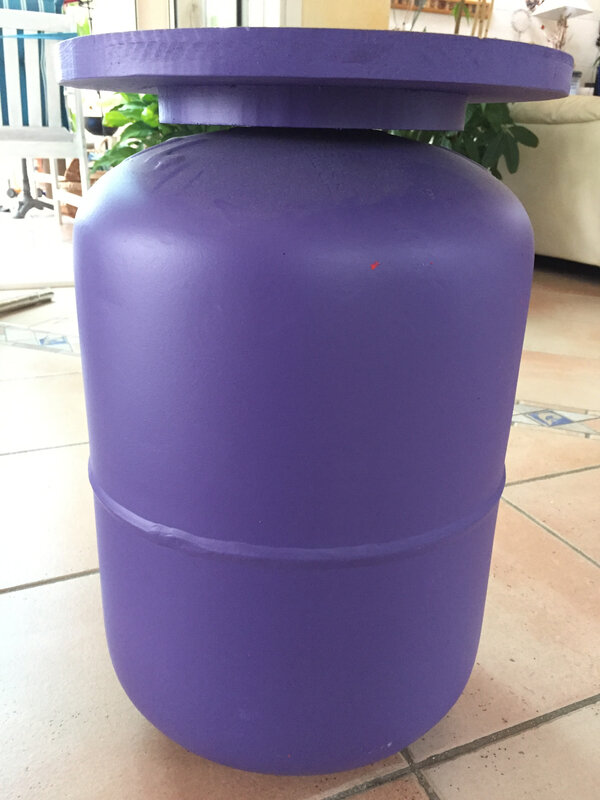 Dans la série… que peut on faire d’autre avec une bouteille de gaz qu’une lampe? …. un siège culbuto, c’est à peu près aussi stable que les balles que l’on utilise pour le Pilates, et qui permettent de travailler le périnée.