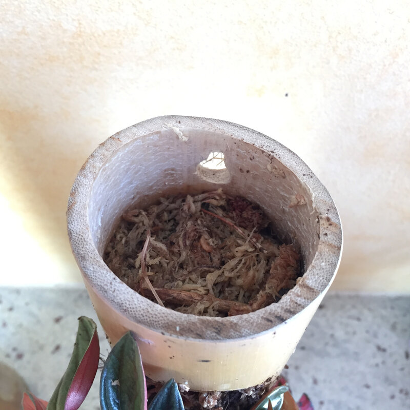 Pour faire cette composition il faut un bambou, de la sphaigne qui est une mousse qui absorbe beaucoup d’eau, des plantes.
