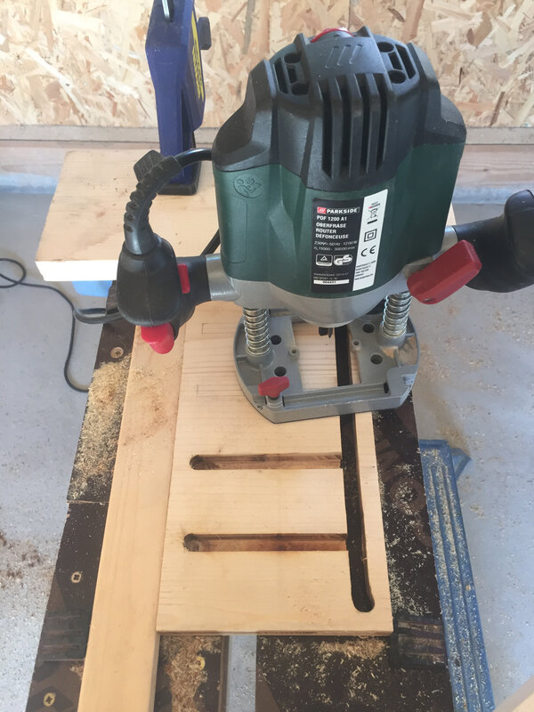 Pour faire le circuit dans le contreplaqué, j’ai utilisé la défonceuse en guidant comme j’ai pu. La fraise a un peu chauffé, mais au bout du compte, ce n’est pas trop mal.
