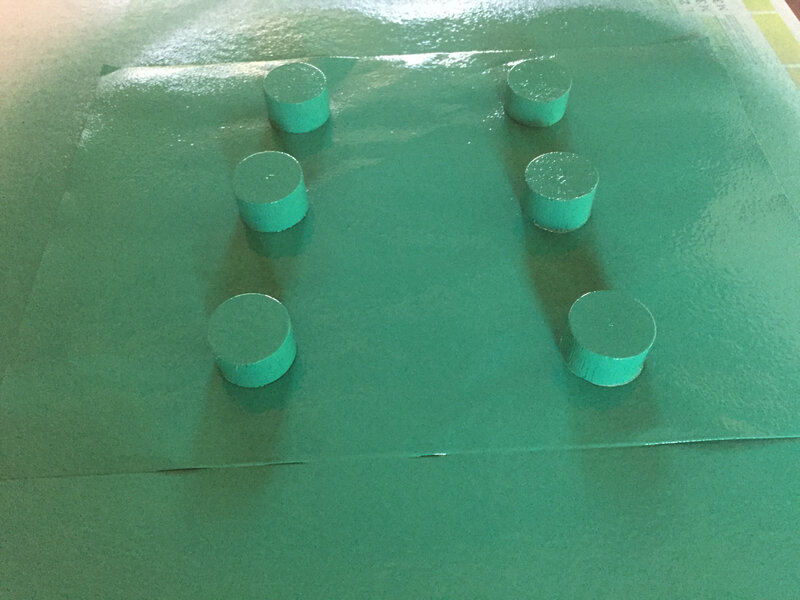 Puis de la peinture en bombe (copieusement) sur les ronds.