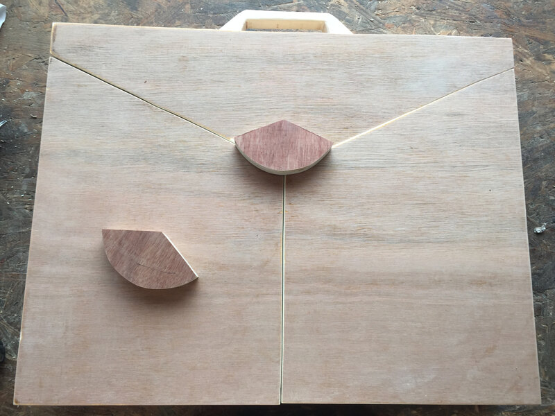 Un peu de ponçage, puis fabrication de la poignée et du verrou,.intégration des charnières et assemblage, le Butai est prêt à être livré à Bérangère pour la peinture.