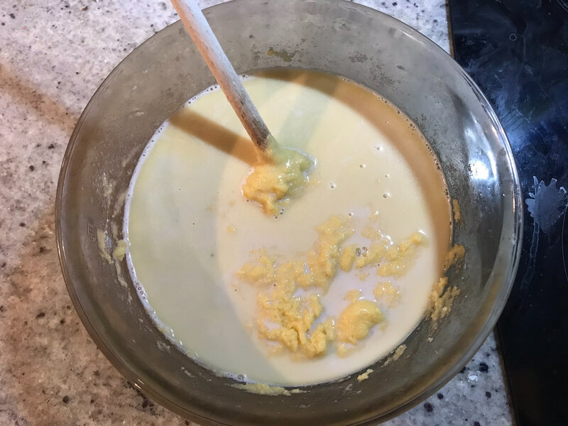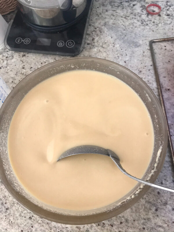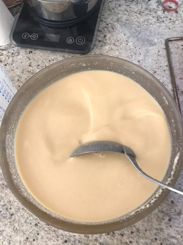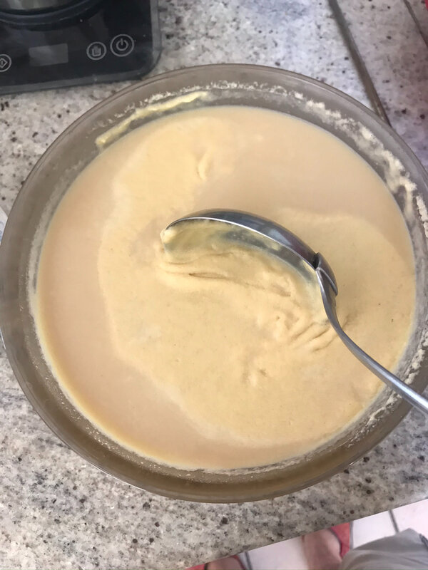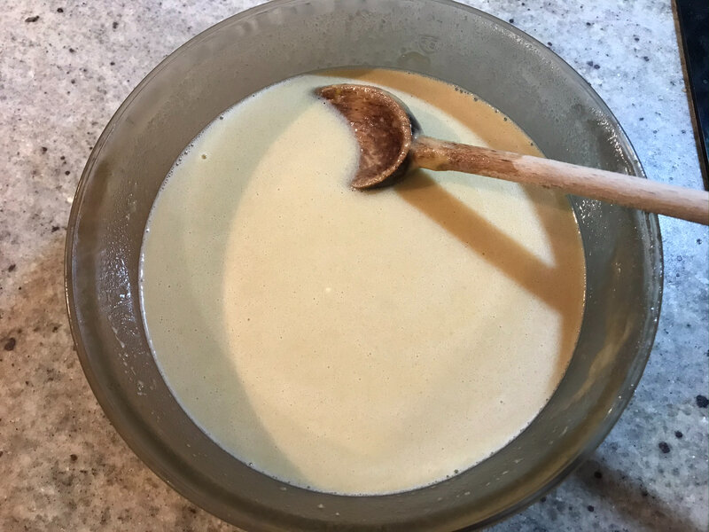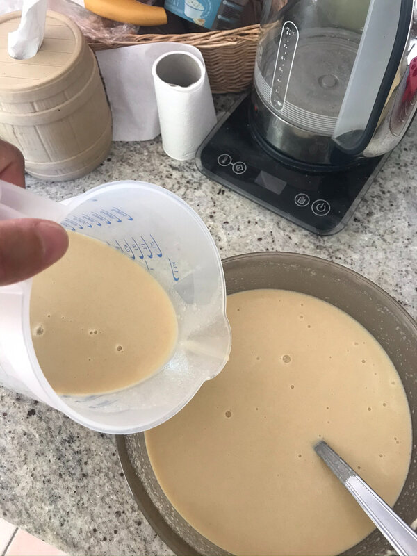 On obtient une consistance de pate à crêpe. La couvrir et laisser reposer une nuit.au frigo.