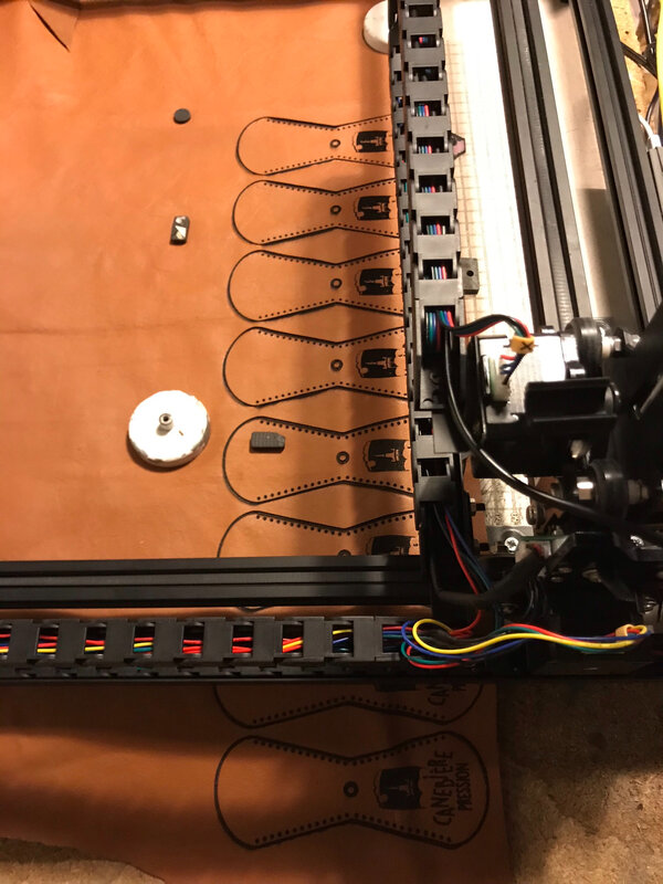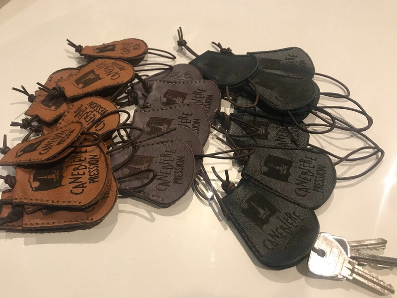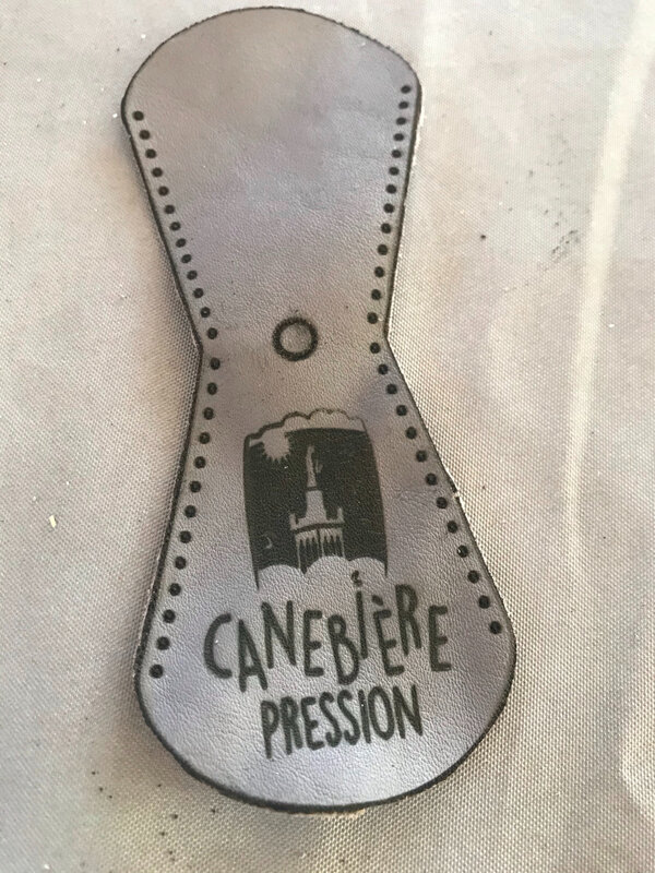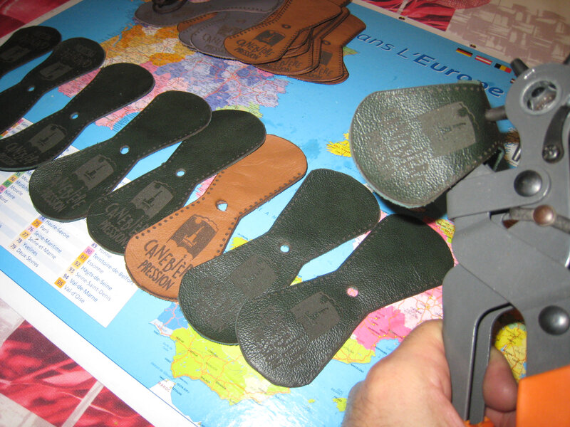 Tous les ans j’essaye de faire un petit cadeau aux musiciens de la fanfare. cette année j’ai eu idée de profiter de la graveuse laser de Jérémie pour faire un porte clé en cuir gravé du logo de la fanfare. Sur le cuir vert le logo est peu visible, j’ai gardé un des verts pour moi. sur le marron ou le gris, le logo est bien visible.
