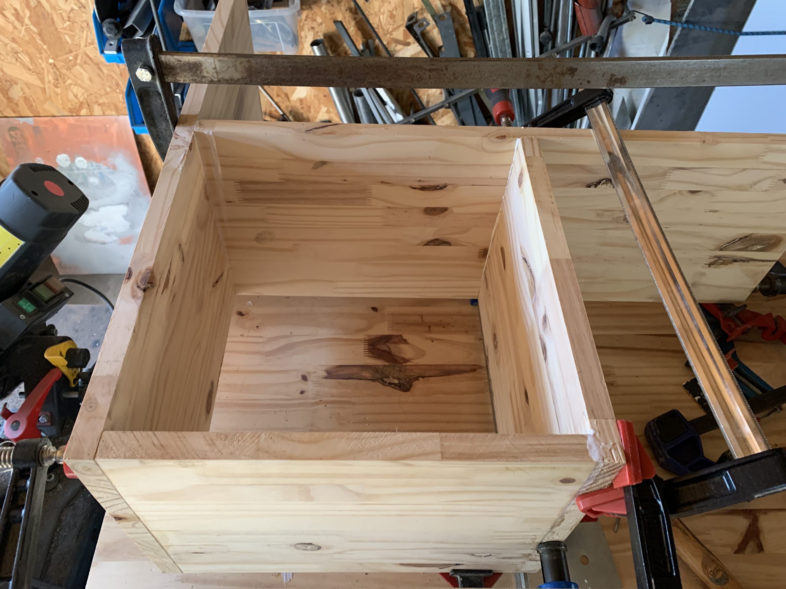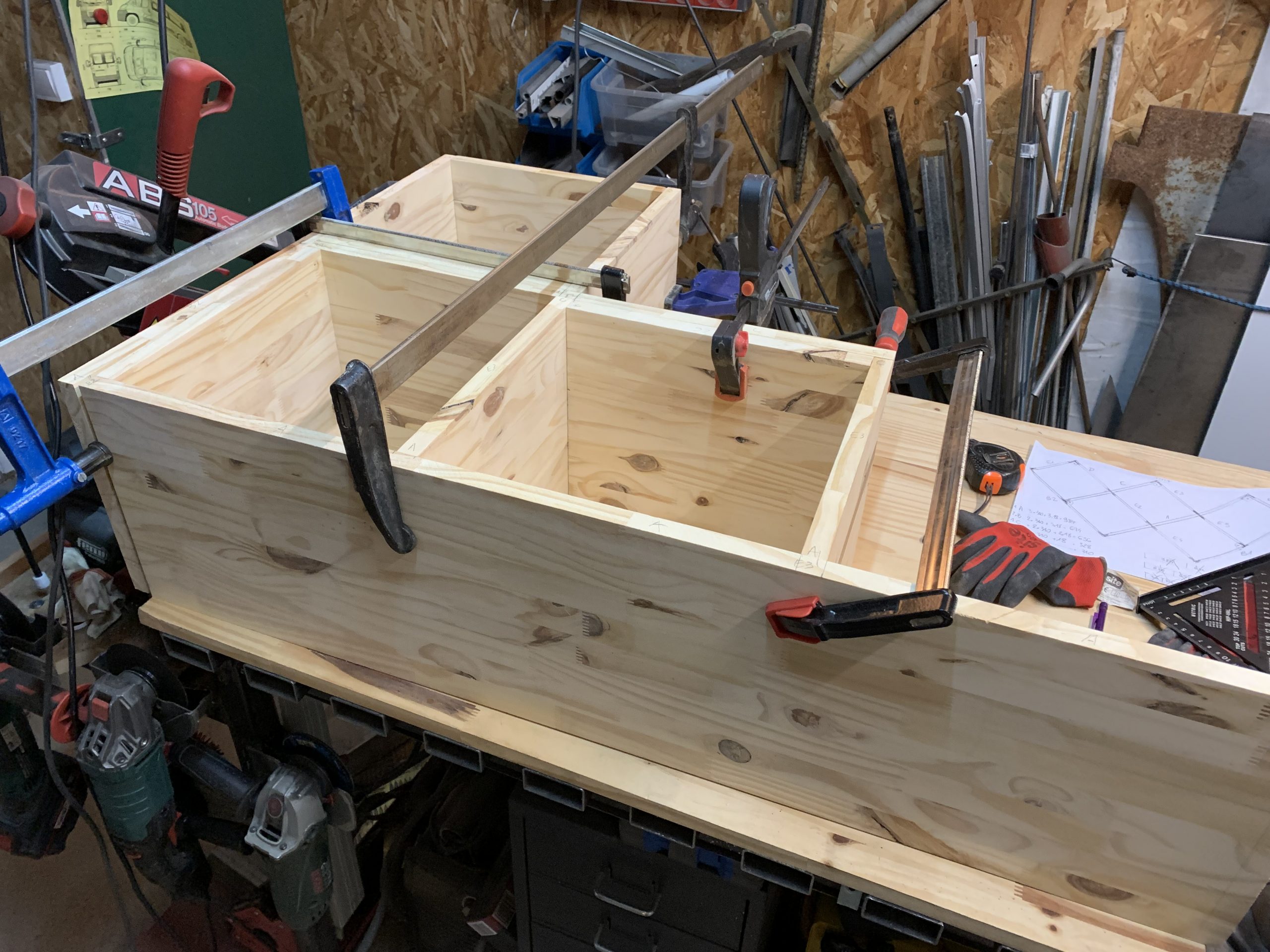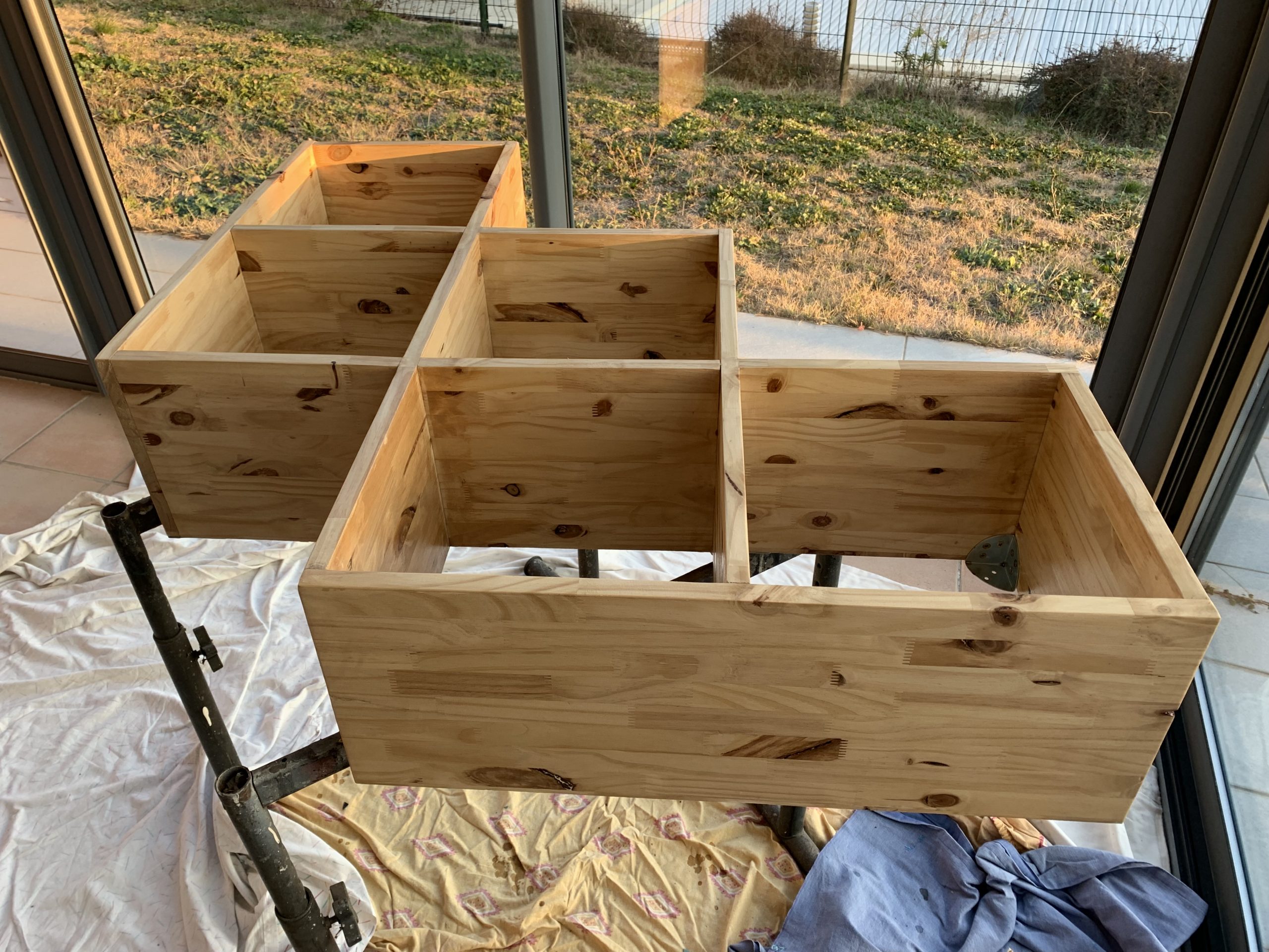 Pour l’assemblage, il faut réfléchir à la séquence, être assez rapide, et avoir assez de serre-joints…. Au final celà s’est bien passé et les liaison sont assez propres.