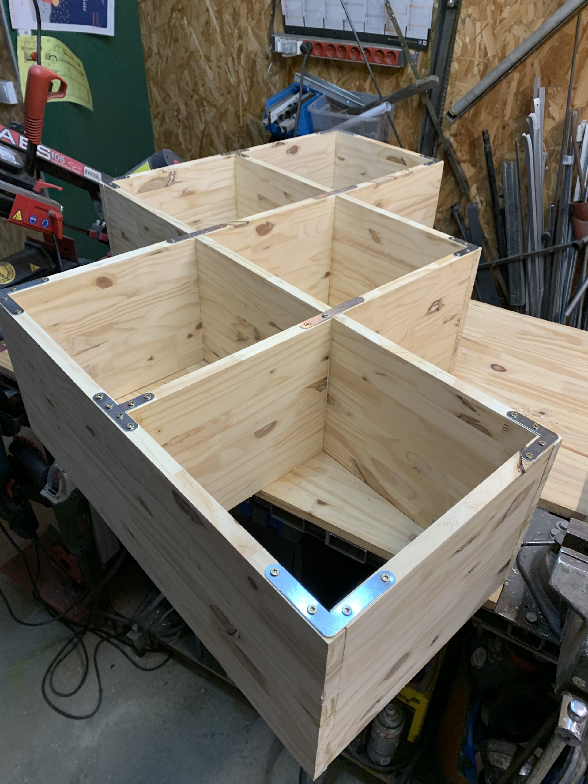 J’ai prévu un coin dans chaque case pour répartir l’effort sur le mur en placo.