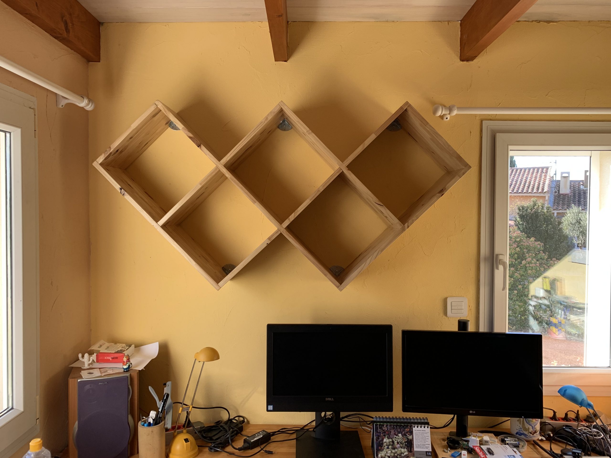 Voilà, c’est fixé, et solide, je trouve que celà remplit bien le mur. Il ne reste plus qu’à le remplir