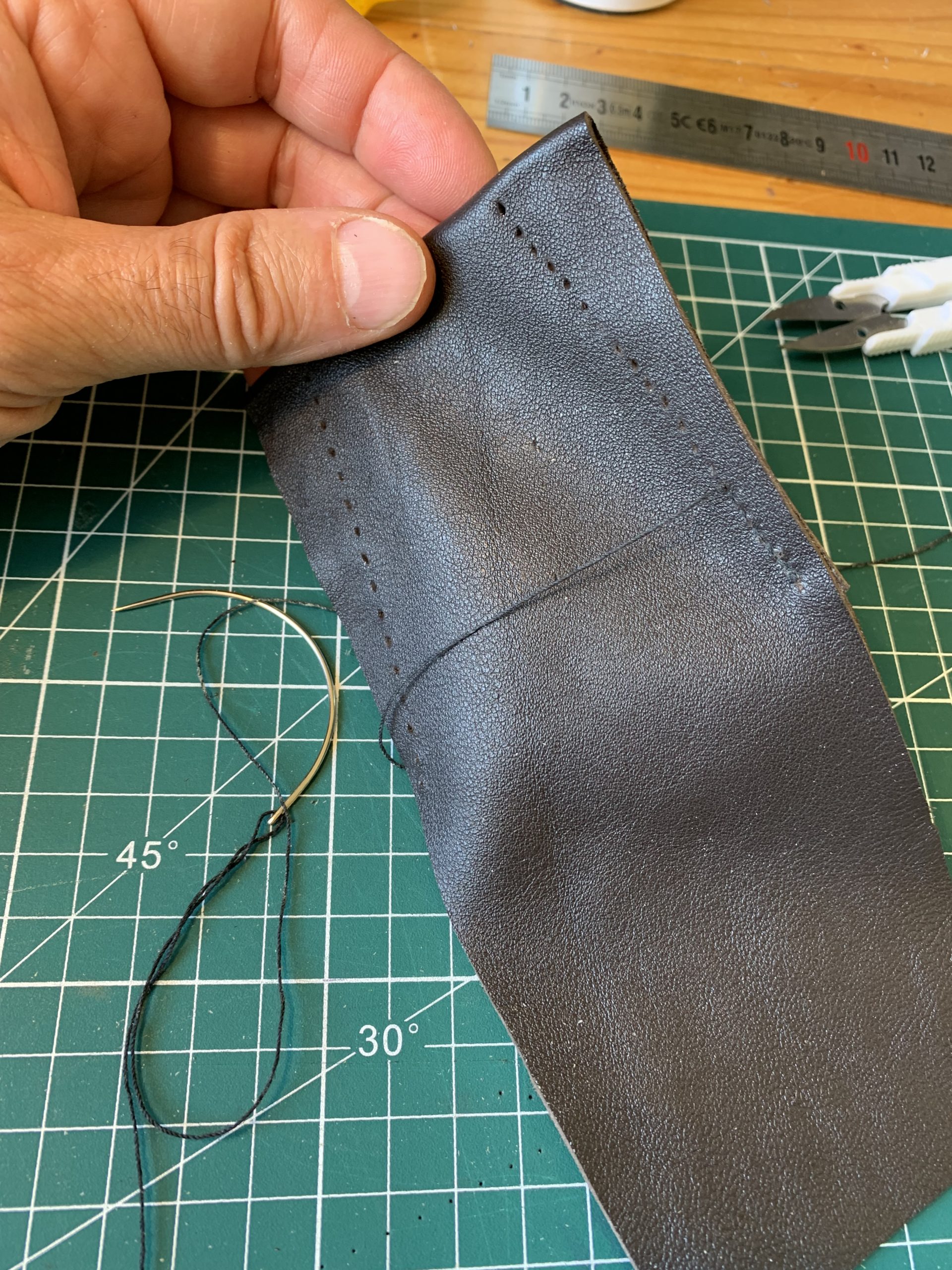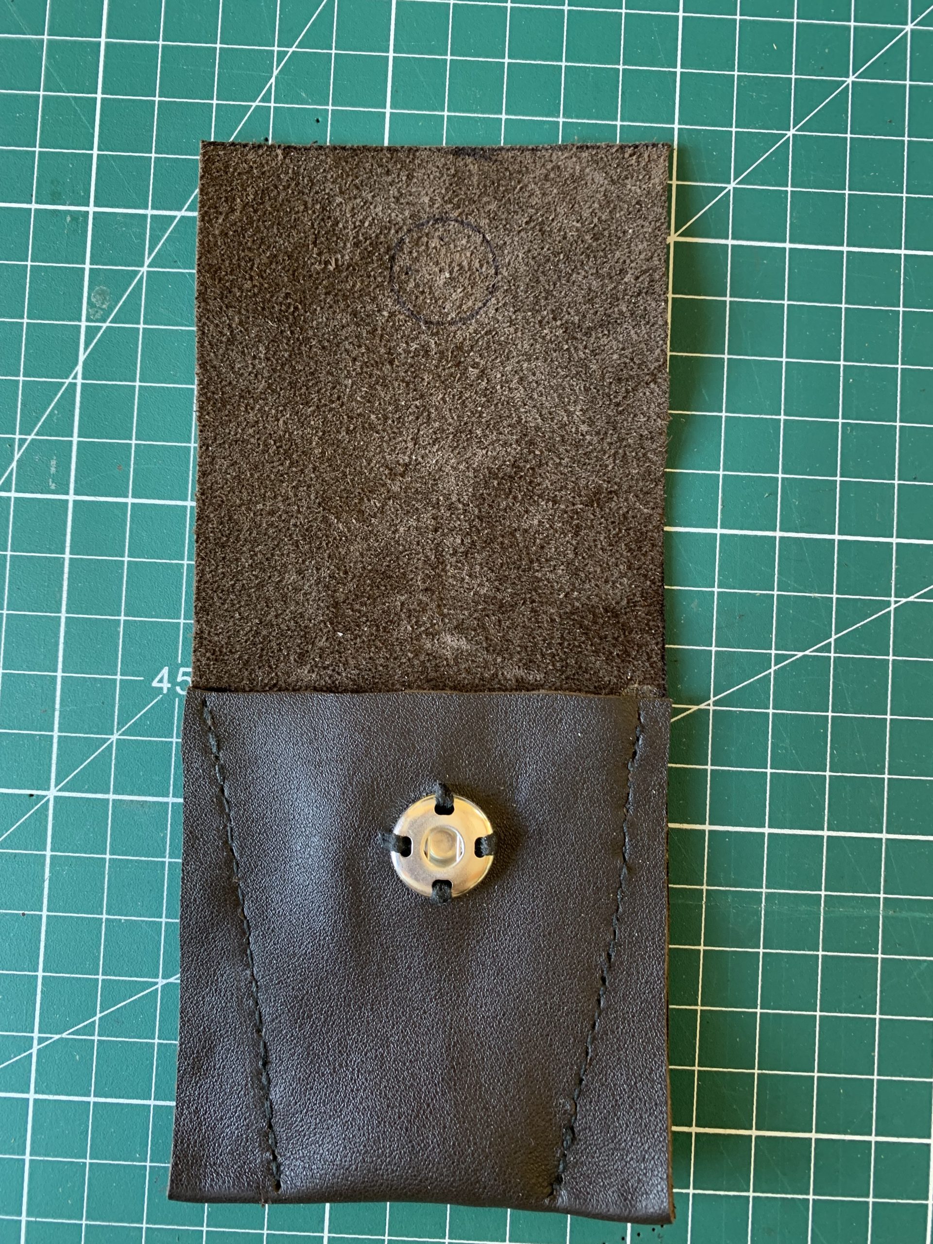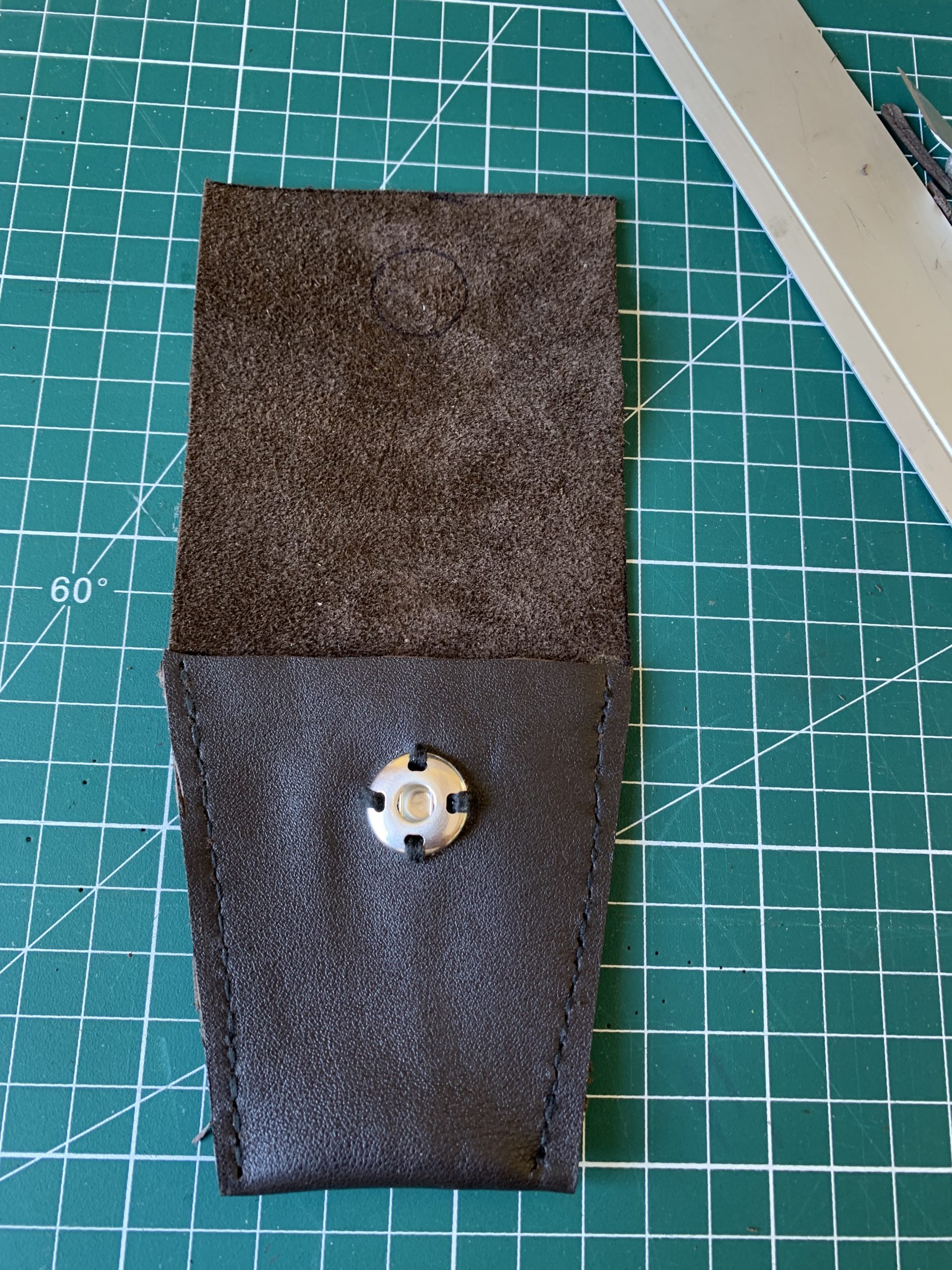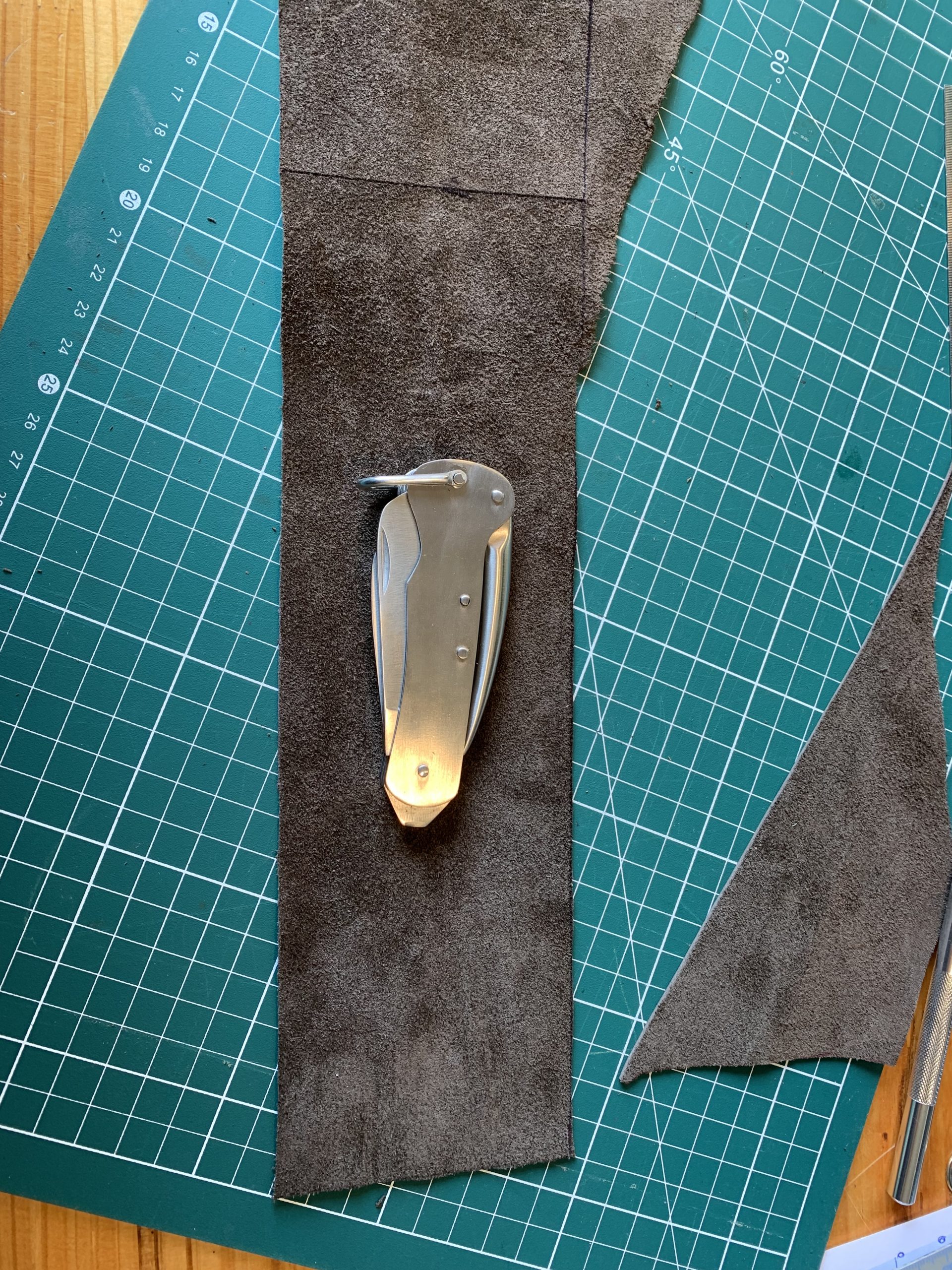 Et j’ai enfin découpé la forme du rabat, et le logement pour l’anneau du couteau.