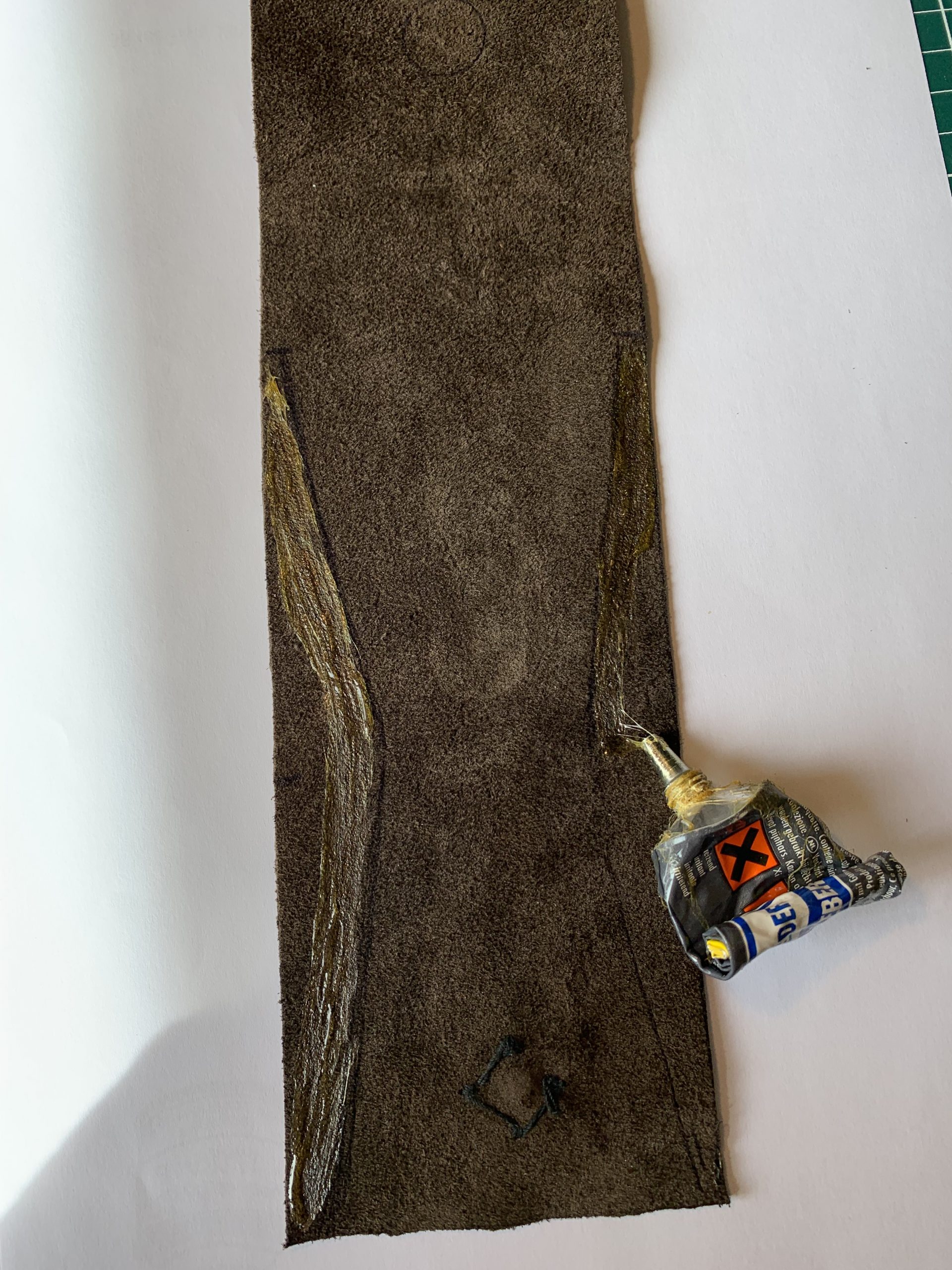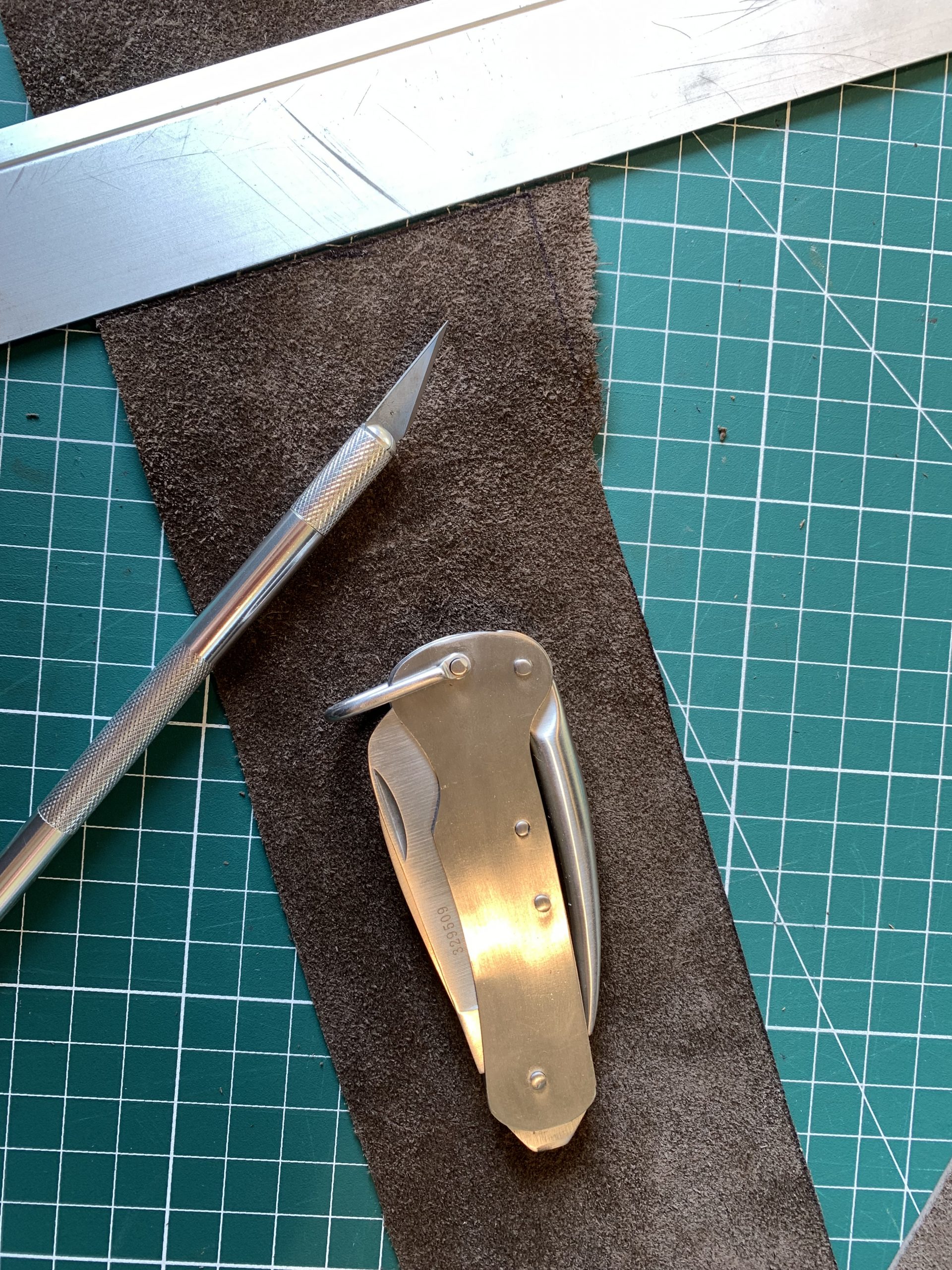 J’ai commencé par trouver la chute de cuir dans ma réserve qui pourrait faire l’affaire et la débiter.