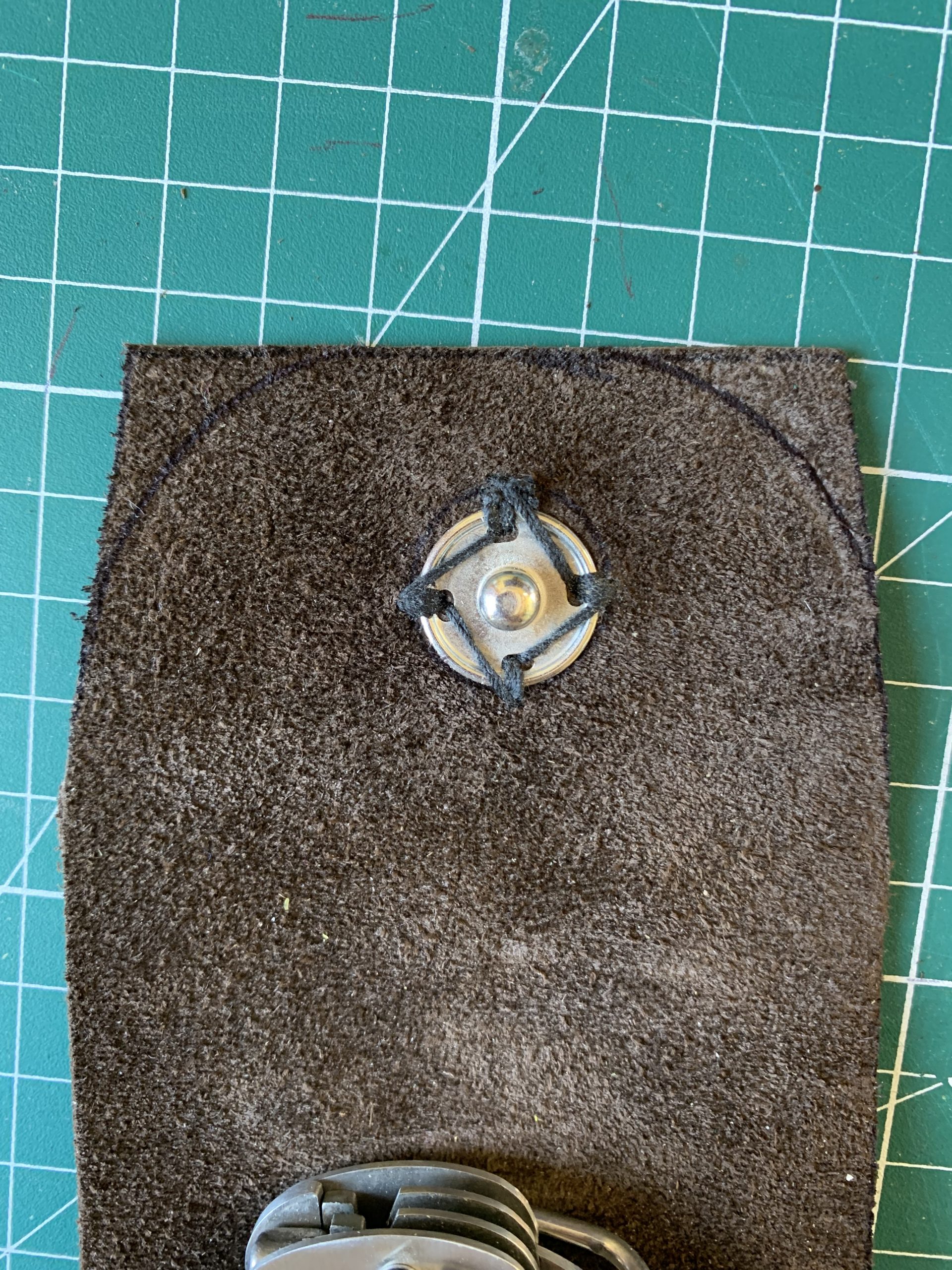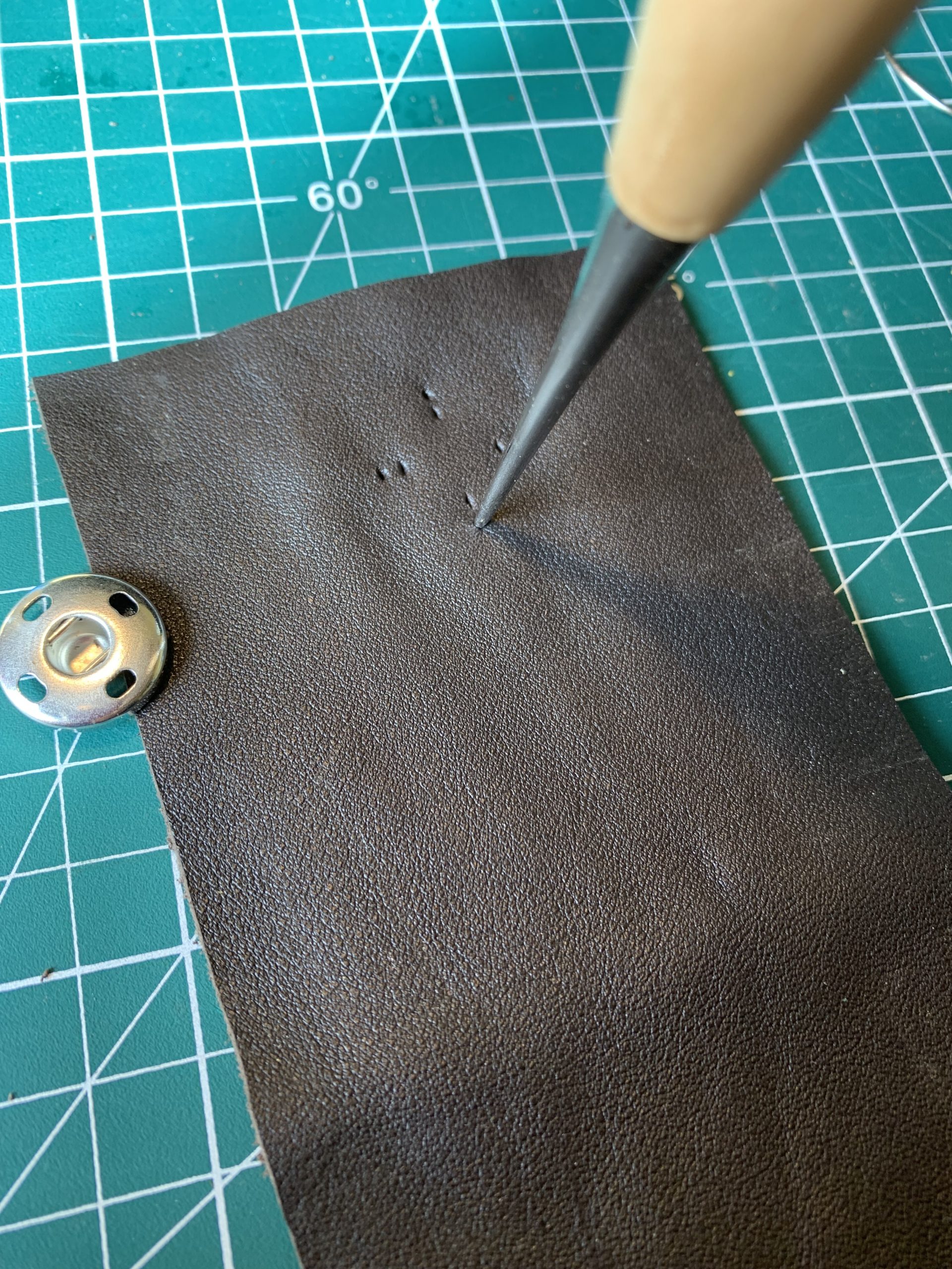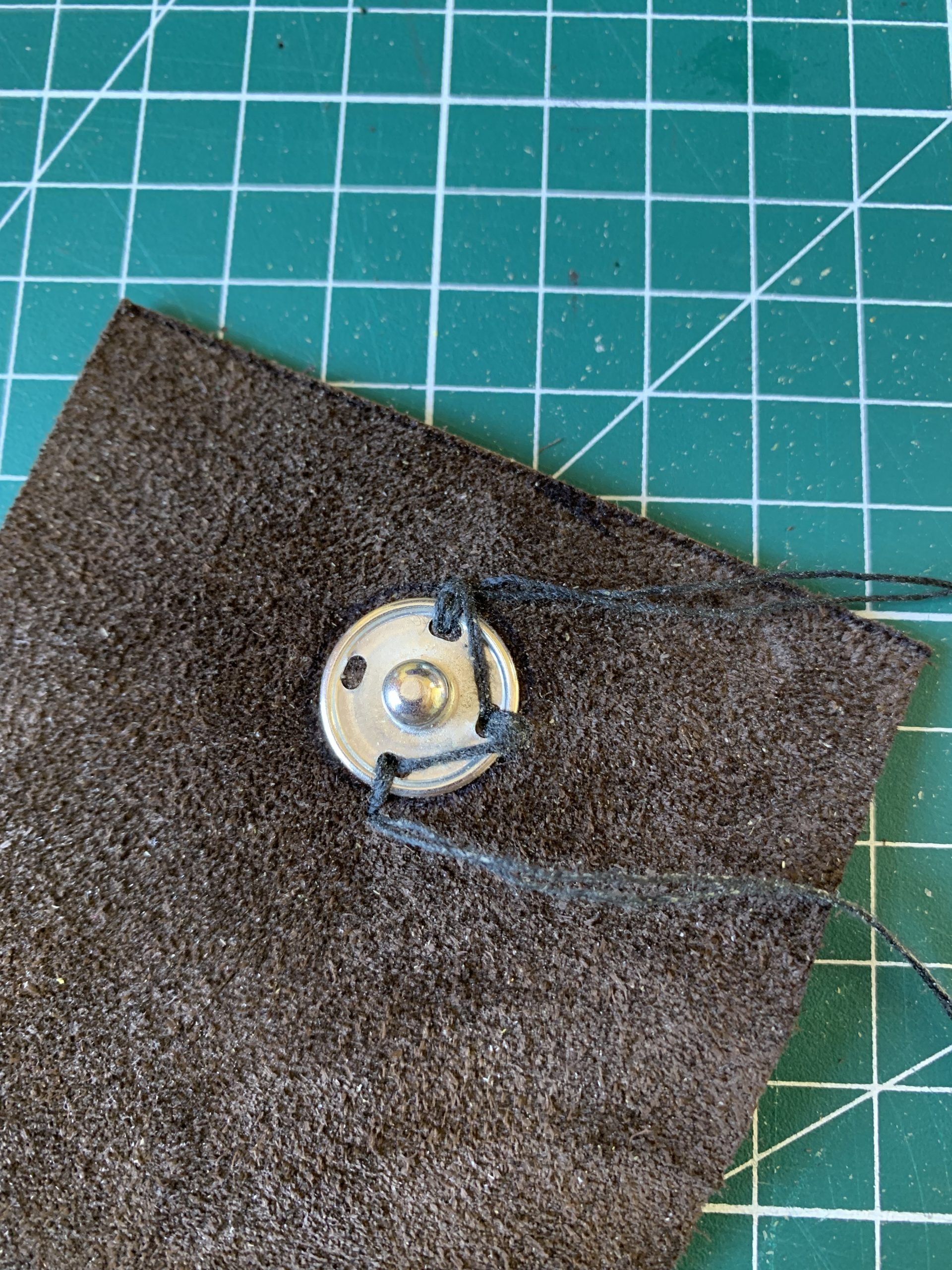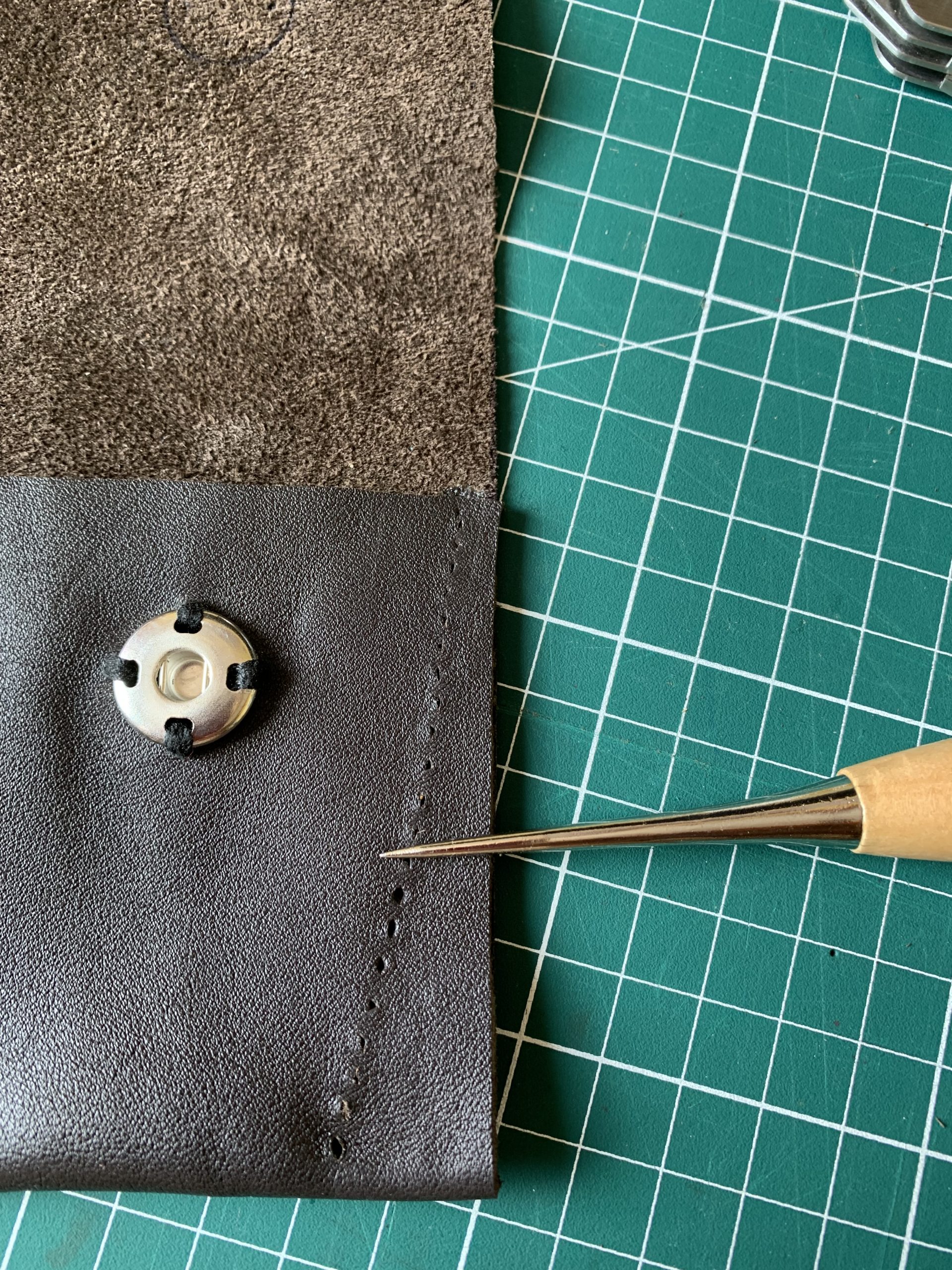 Il est plus facile de coudre la pression sur l’étui avant de le coudre, j’ai donc préparé la pièce de finition extérieure et la pression et je les ai cousus.