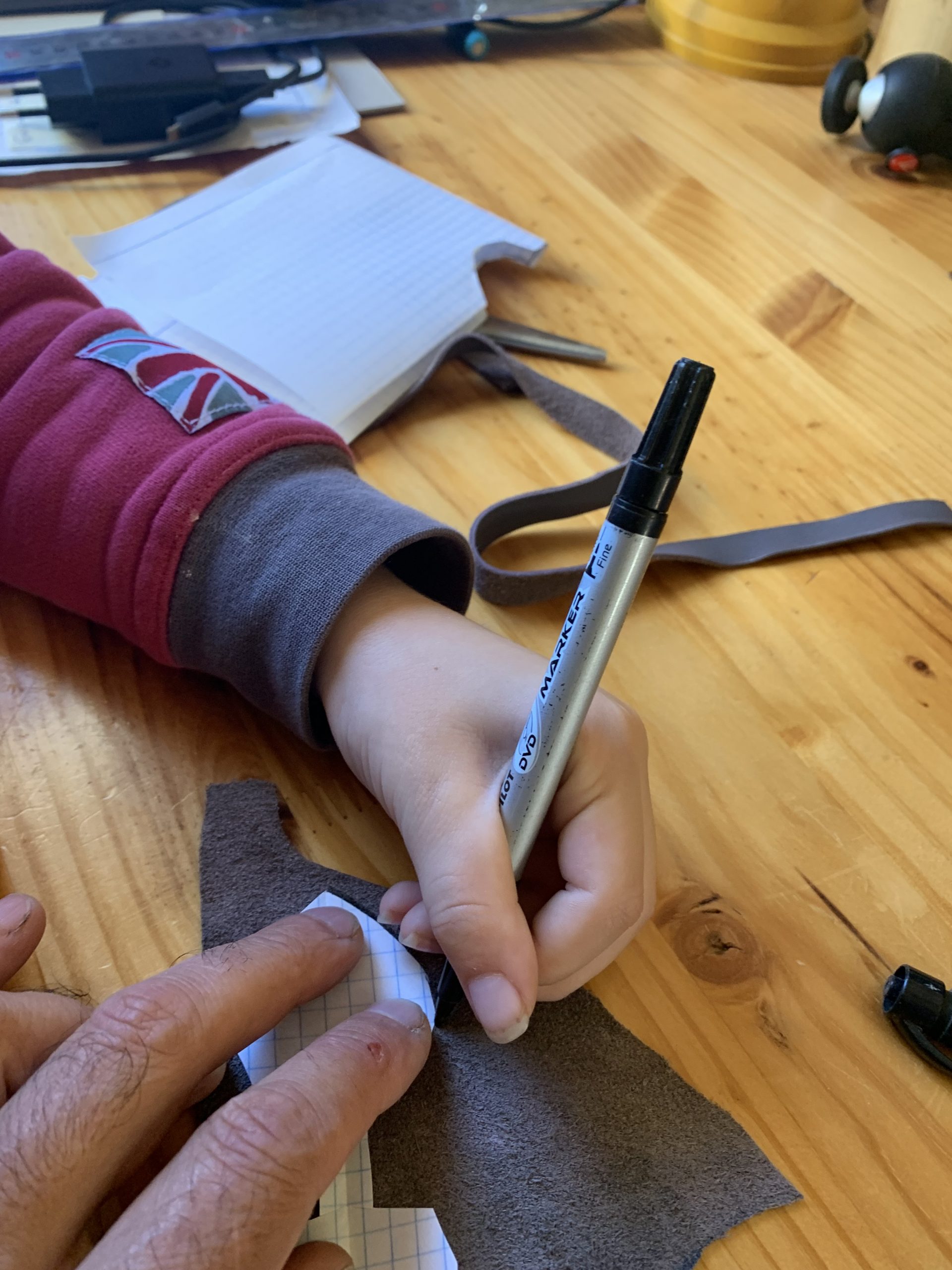 Nous avons commencé par faire un gabarit en papier et le découper puis tracer sur le cuir.