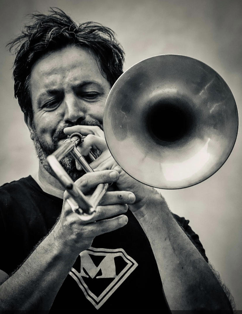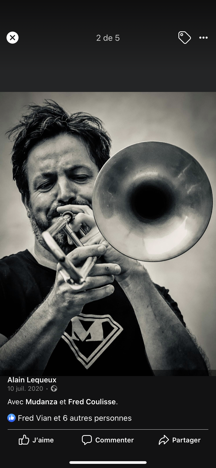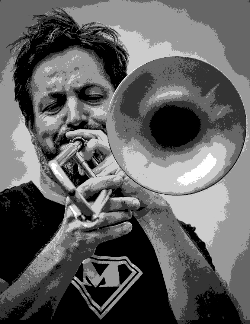 J’ai choisi une très belle photo de Fred que j’avais vue sur son site Facebook. Elle a été prise par Alain Lequeux lors du dernier festival de fanfares à Salon de Provence. En fait tout est parti de cette photo qui est très belle, je voulais en faire quelque chose.