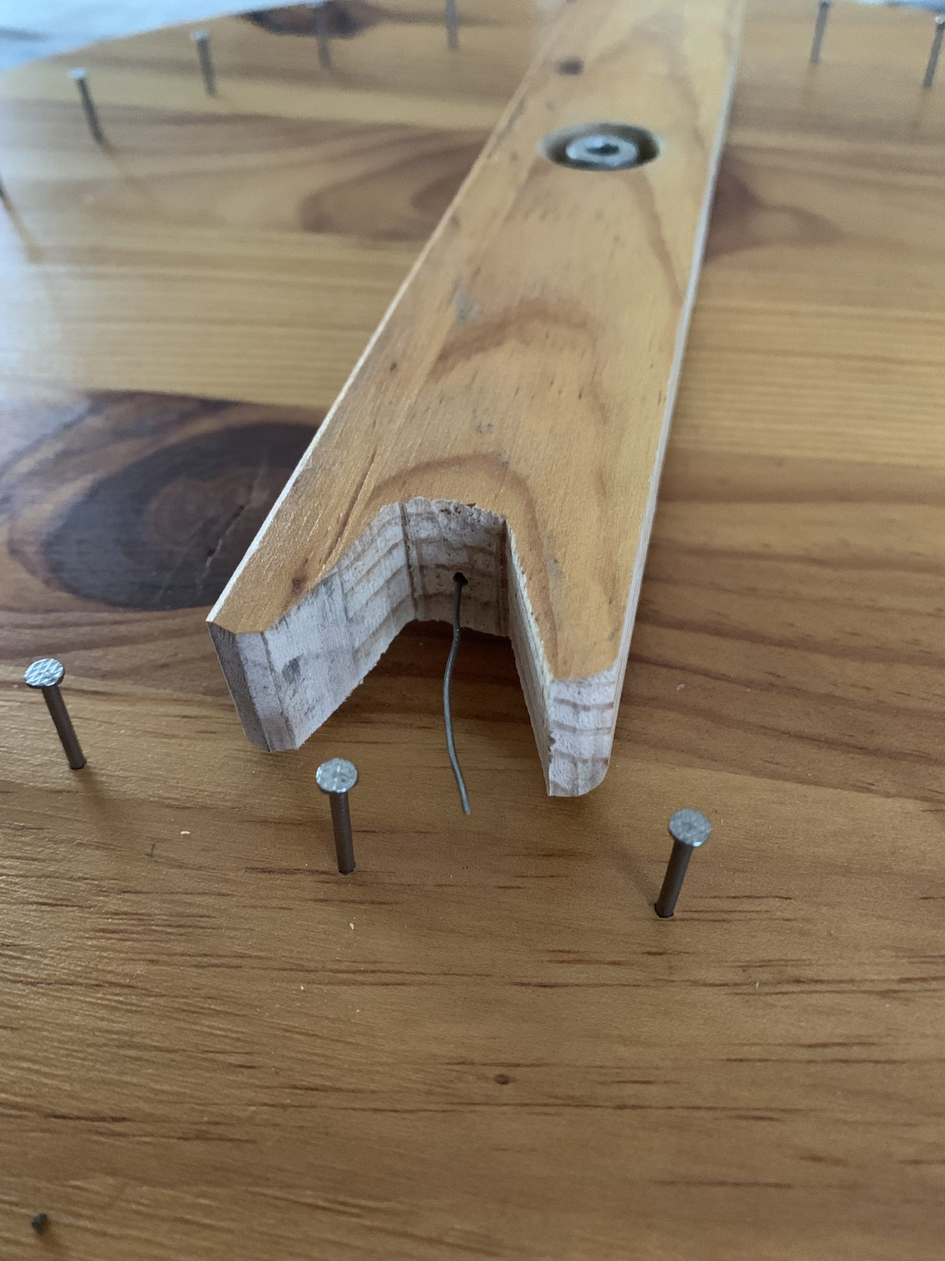 J’ai inséré un fil de fer à l’arrière de la flèche pour arrêter la flèche entre 2 clous.