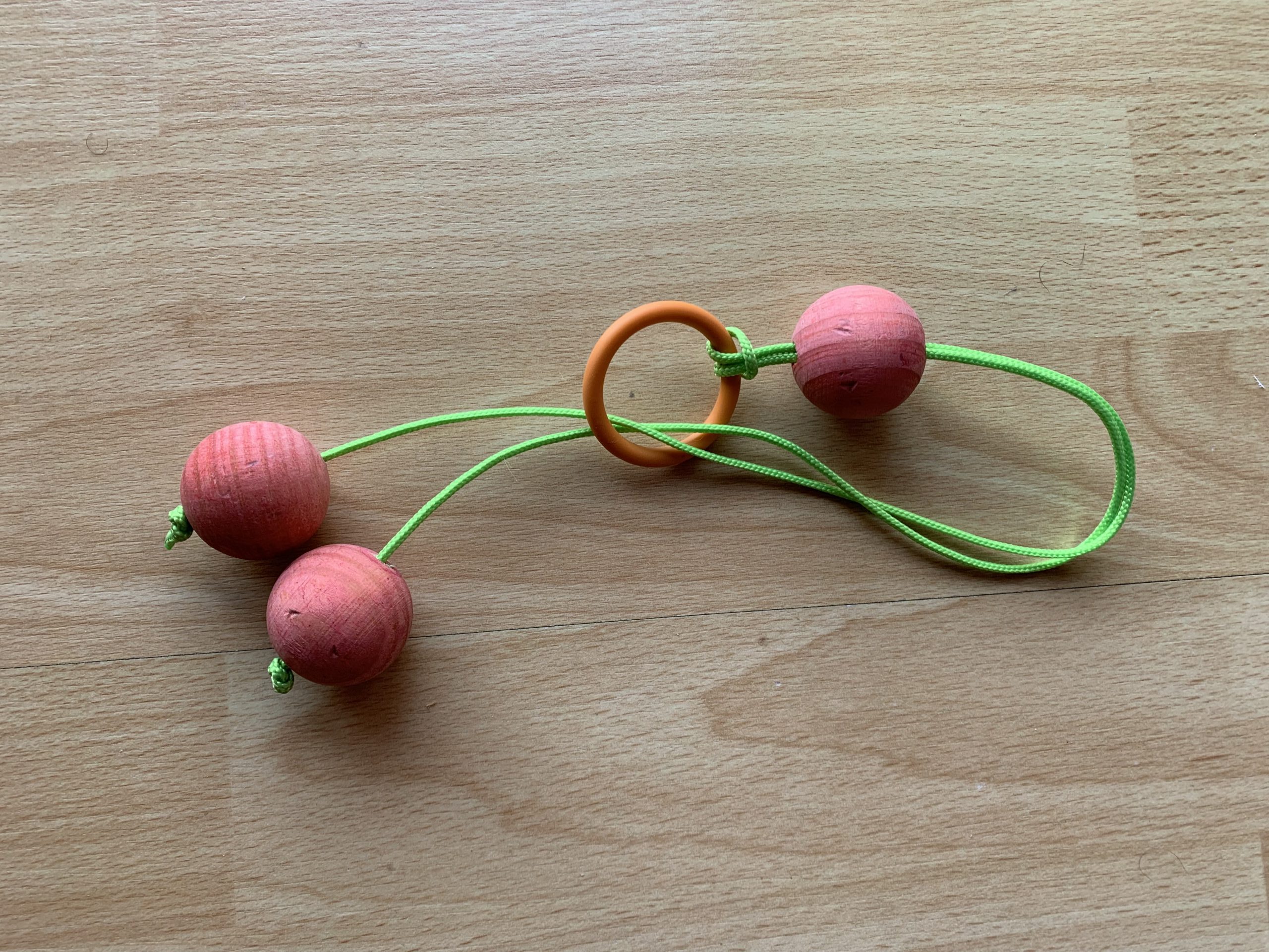 Pour le premier il s’agit de séparer les éléménts: anneau, boule, corde avec 2 boules.
