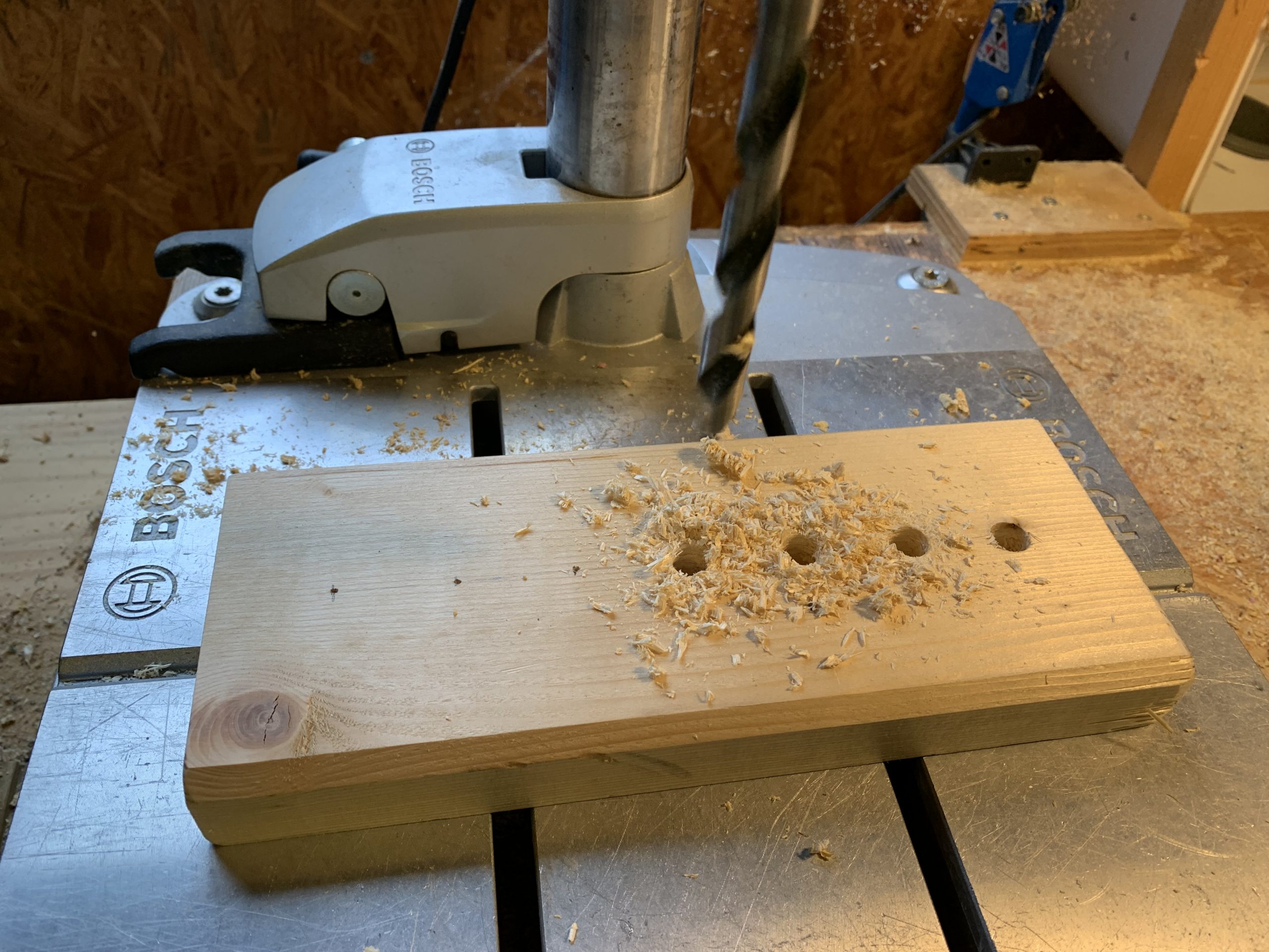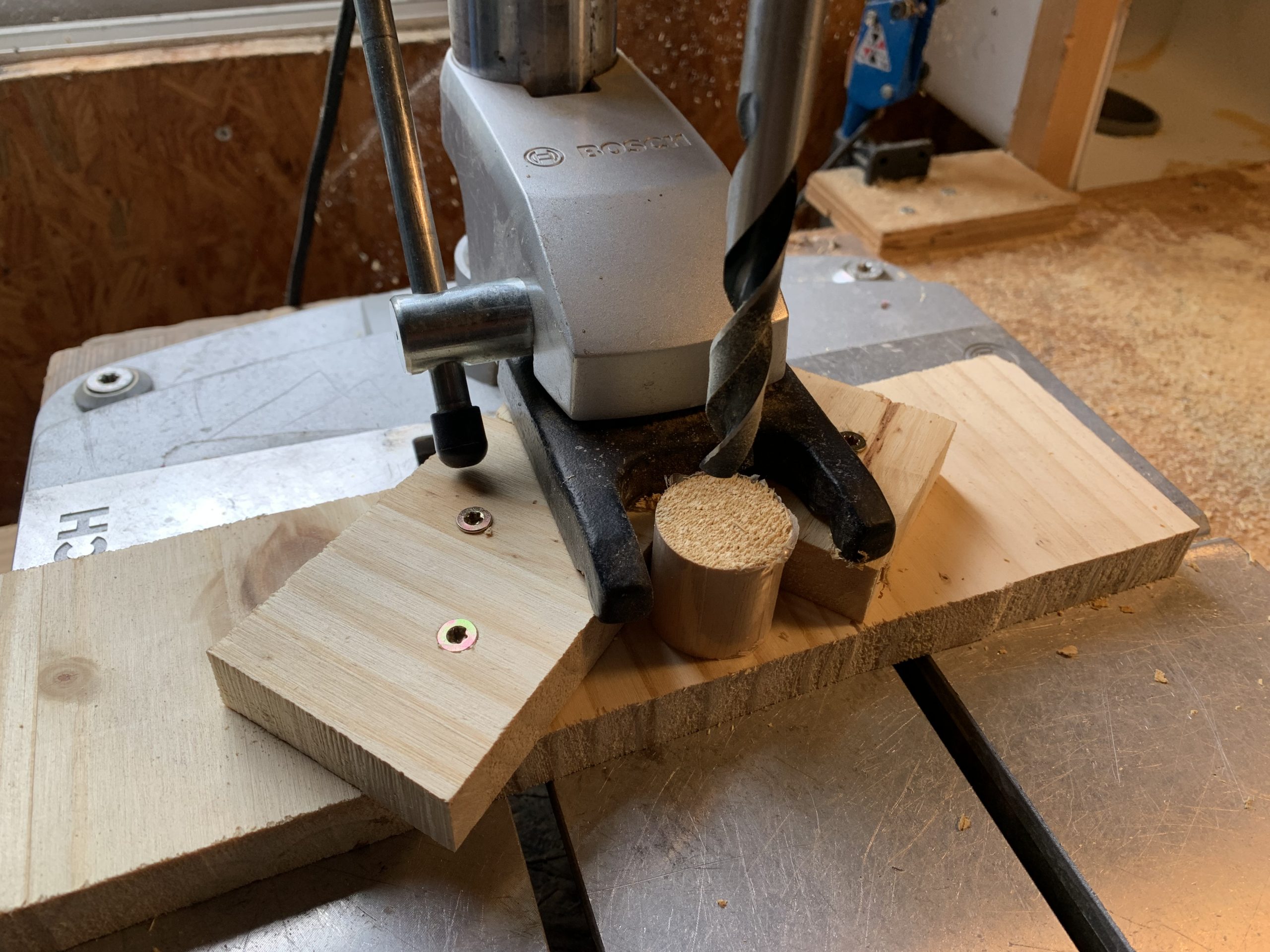 J’ai ensuite percé les pions en m’aidant d’un outillage pour les centrer.
