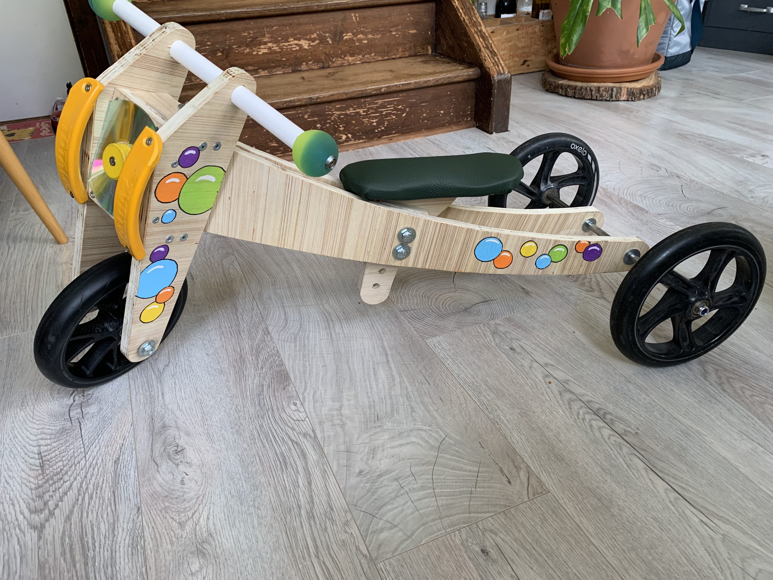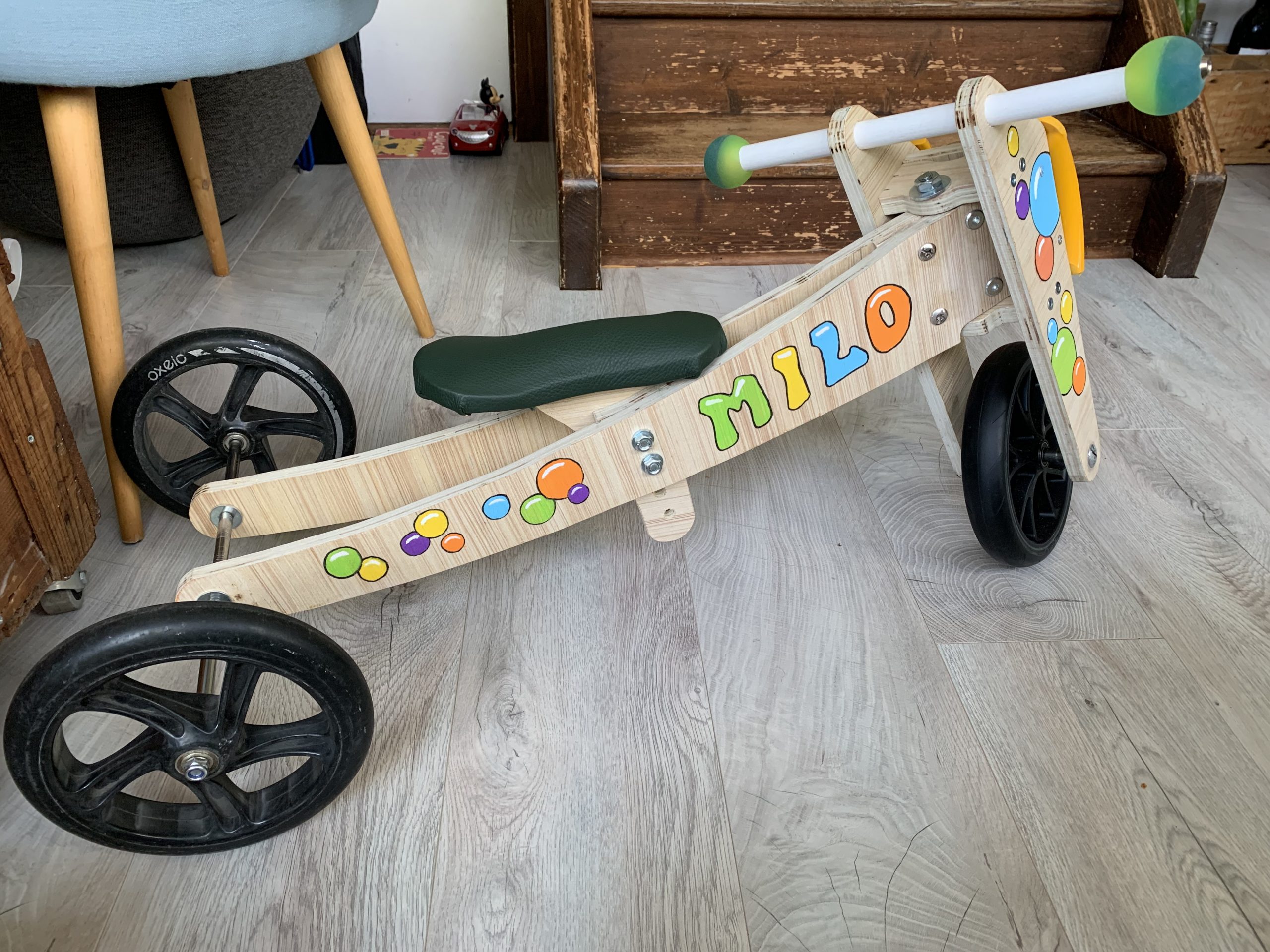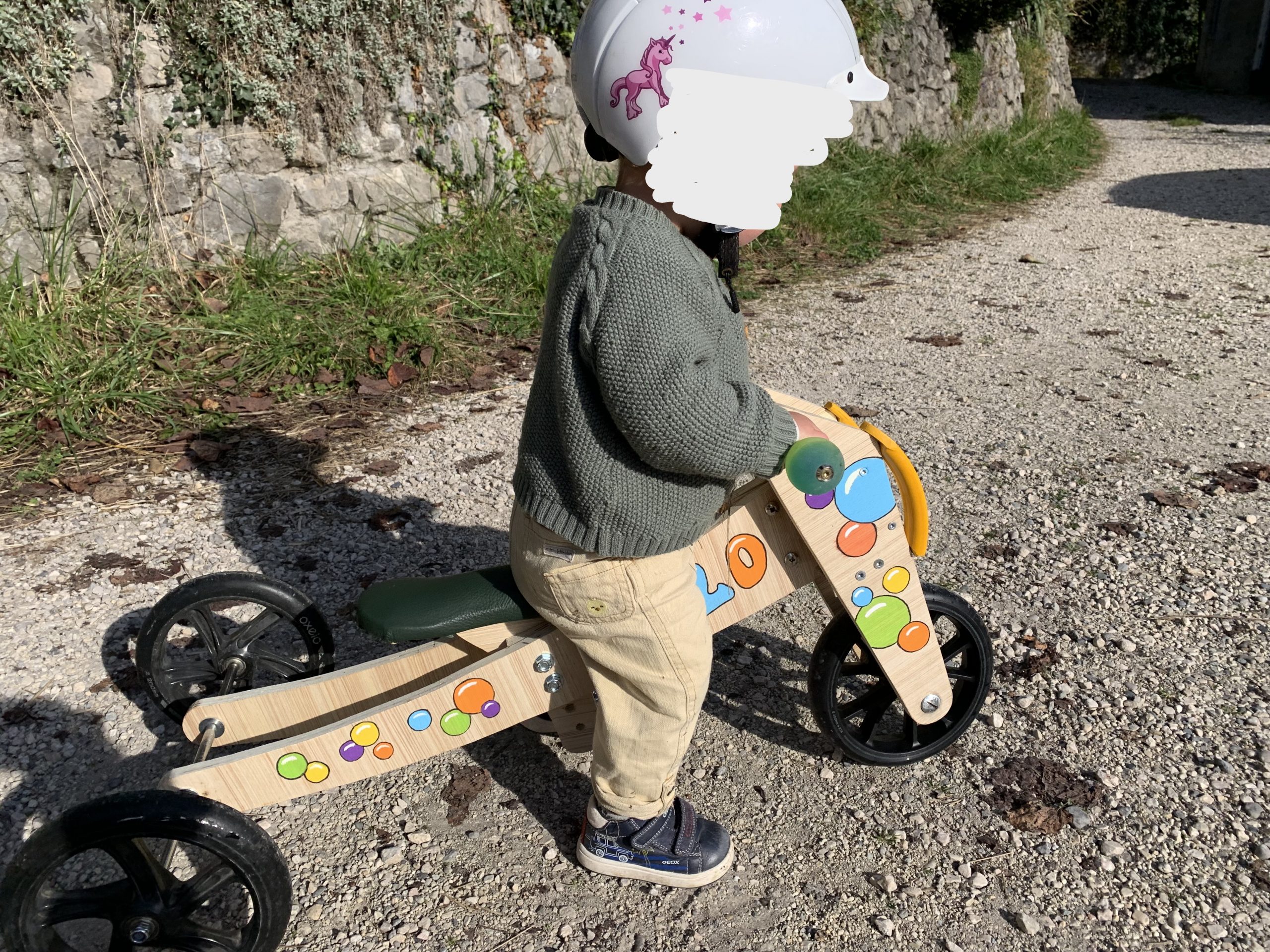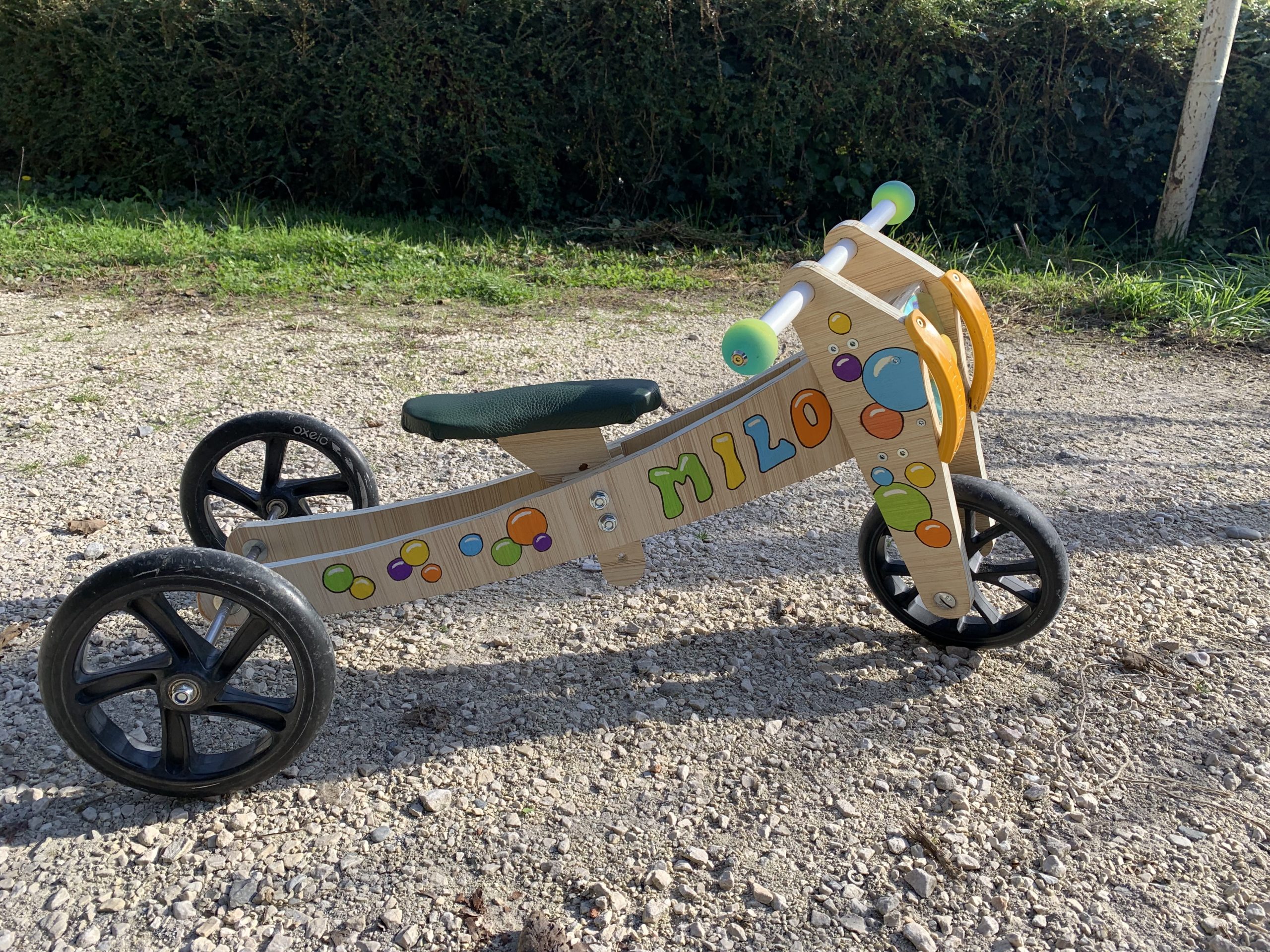Milo a maintenant 1 an et demi, et c’est le moment de lui offrir un draisienne comme à ses autres cousins. C’est ma quatrième, toujours sur le même modèle.