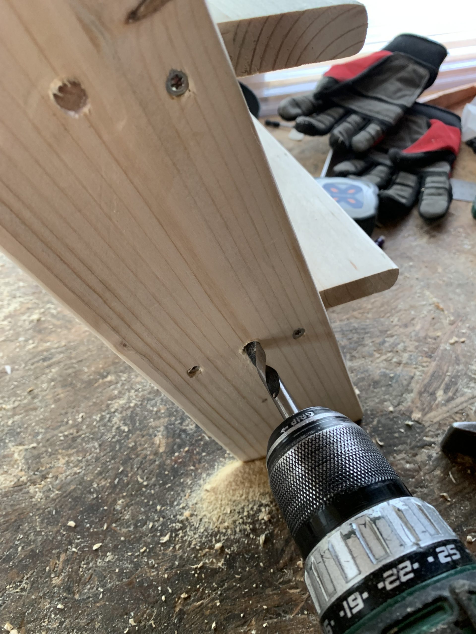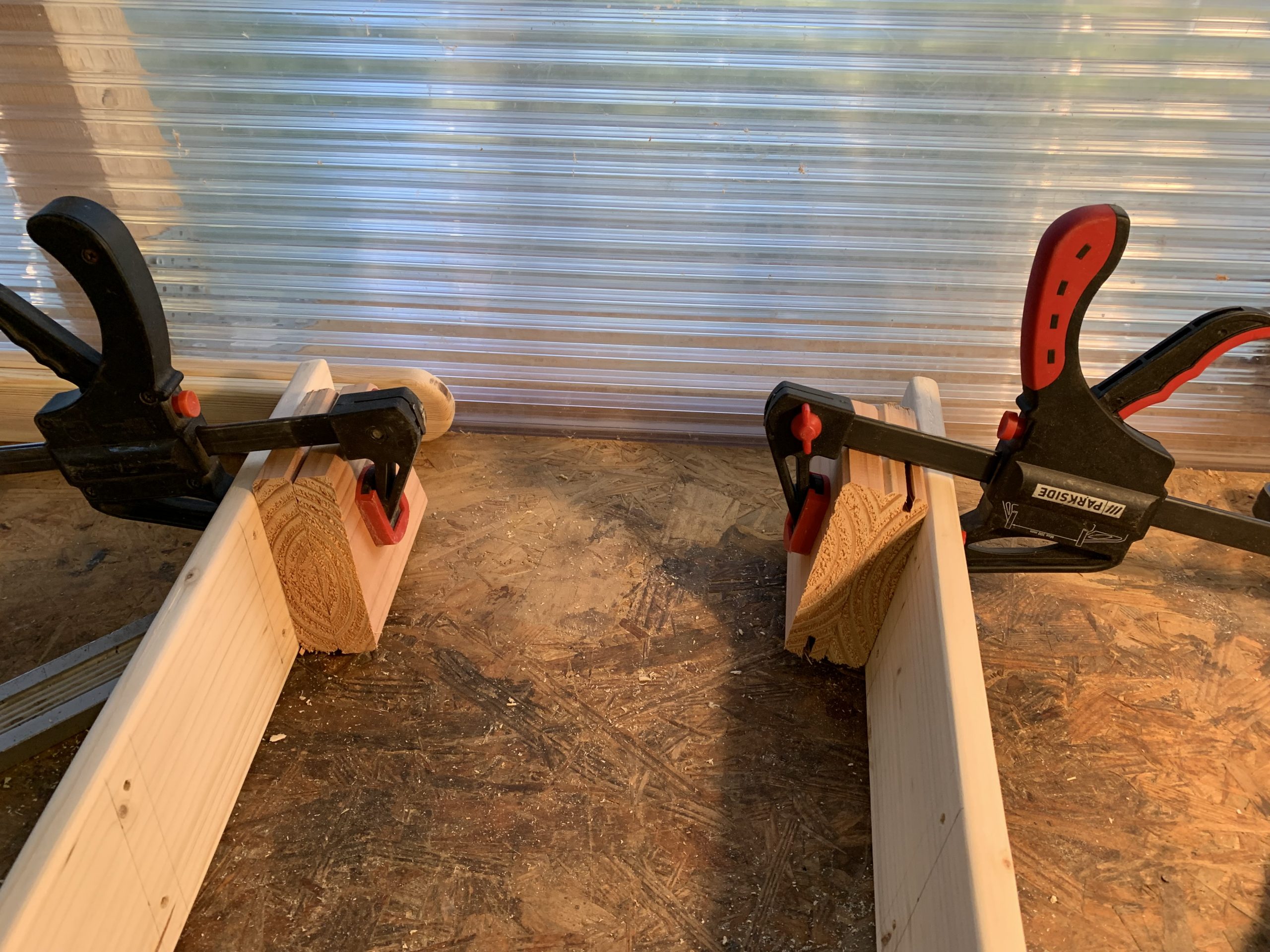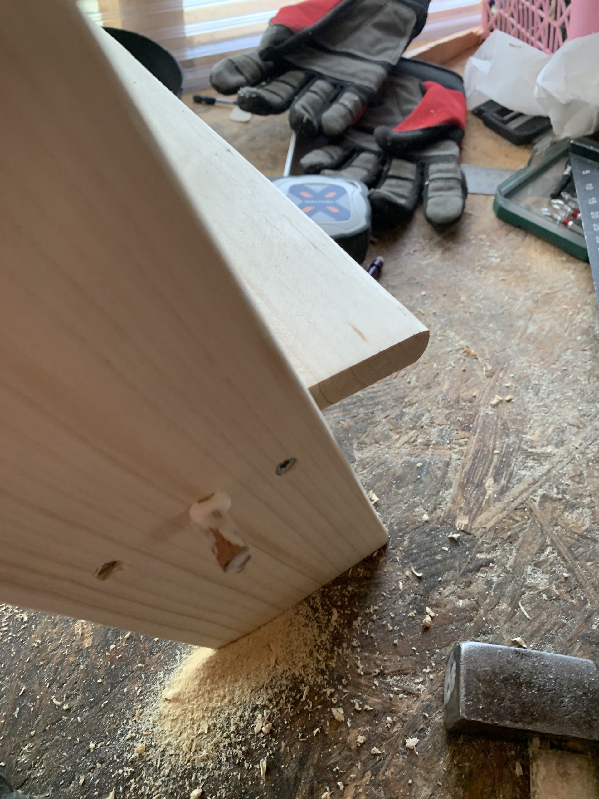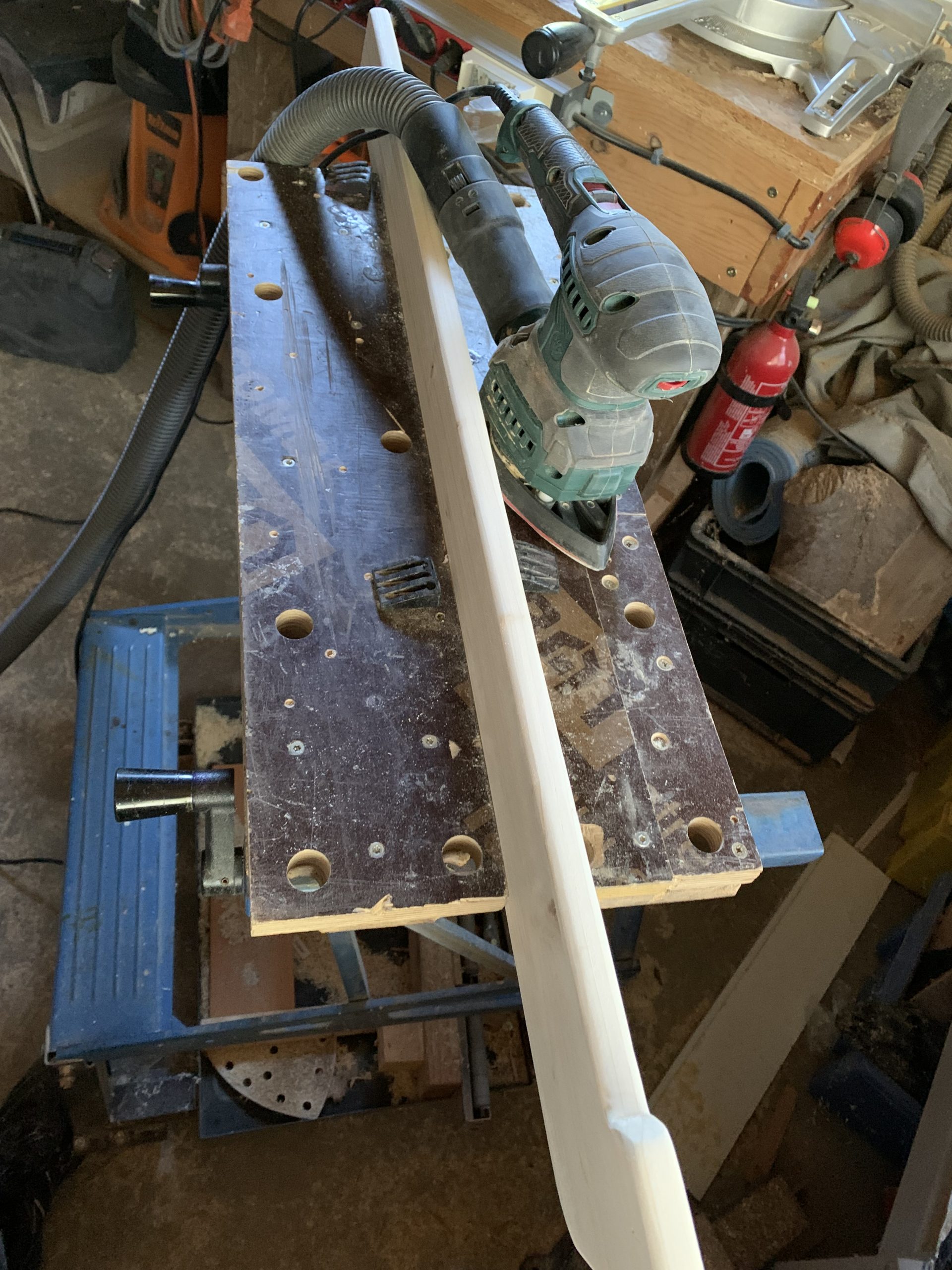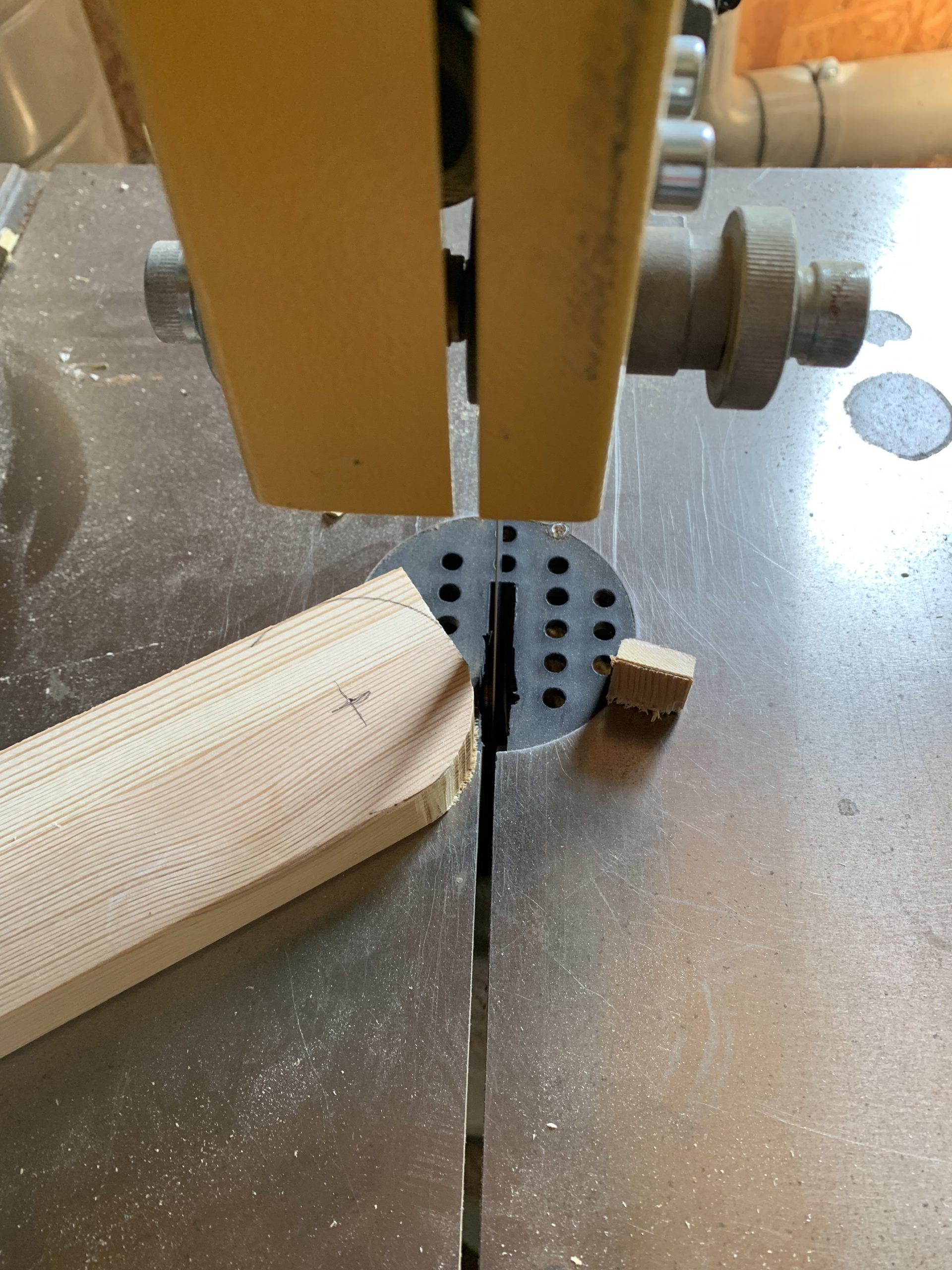 J’ai découpé les différentes pièces à la scie à ruban et j’ai arrondi les arêtes à la défonceuse pour que ce ne soit pas agressif. Puis un bon ponçage. Tout ça avec mes outils Park…de