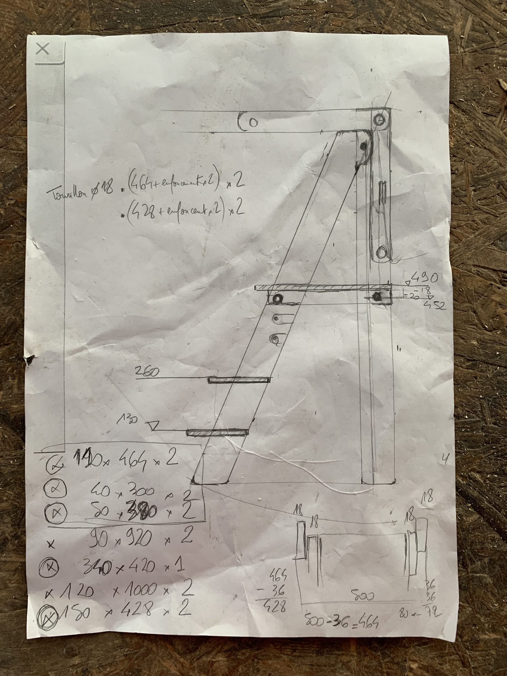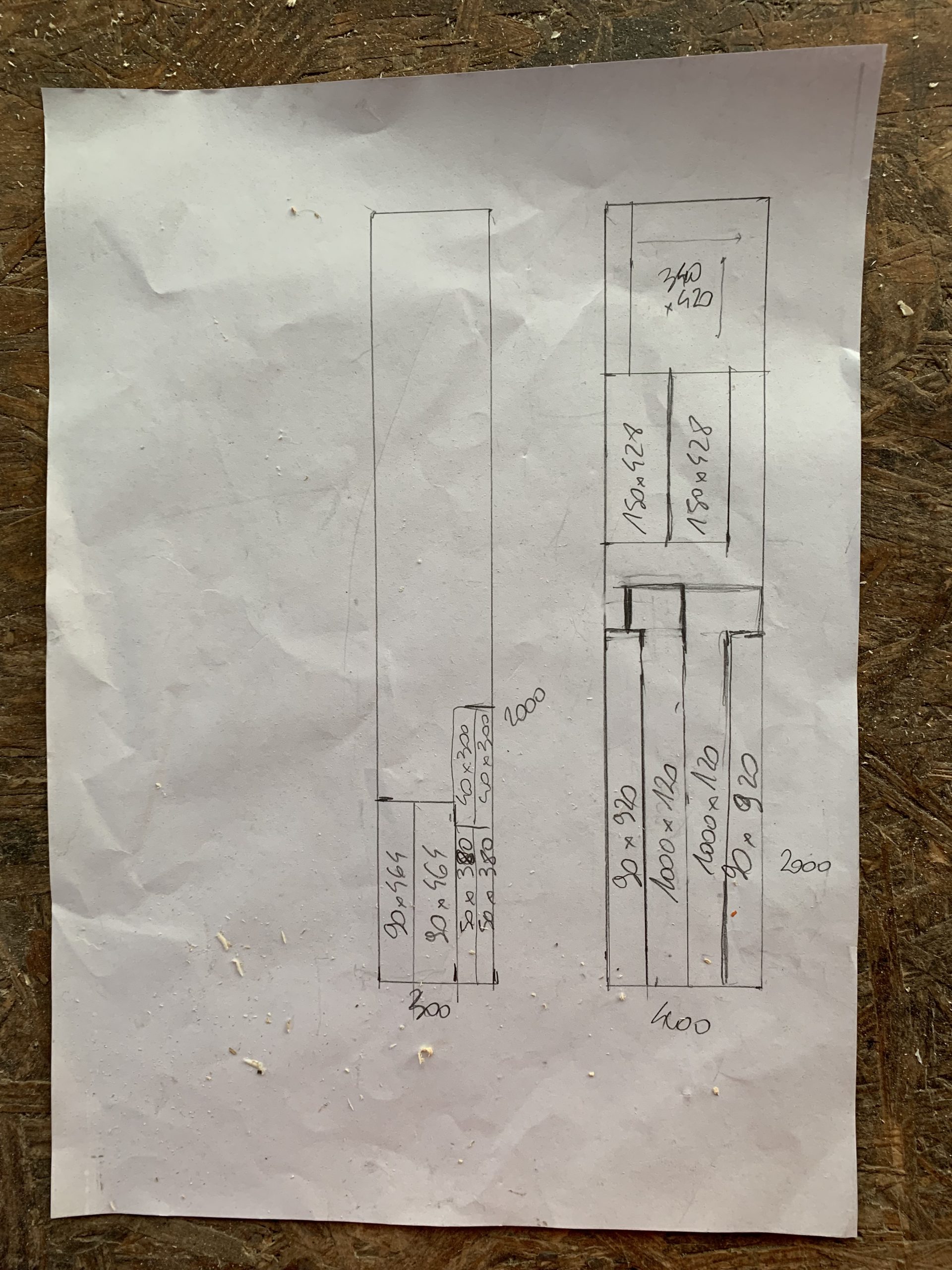 J’ai commencé par faire des schémas et des plans de débits pour acheter les planches. Bon peut être plan est un bien grand mot, plutot crobard.
