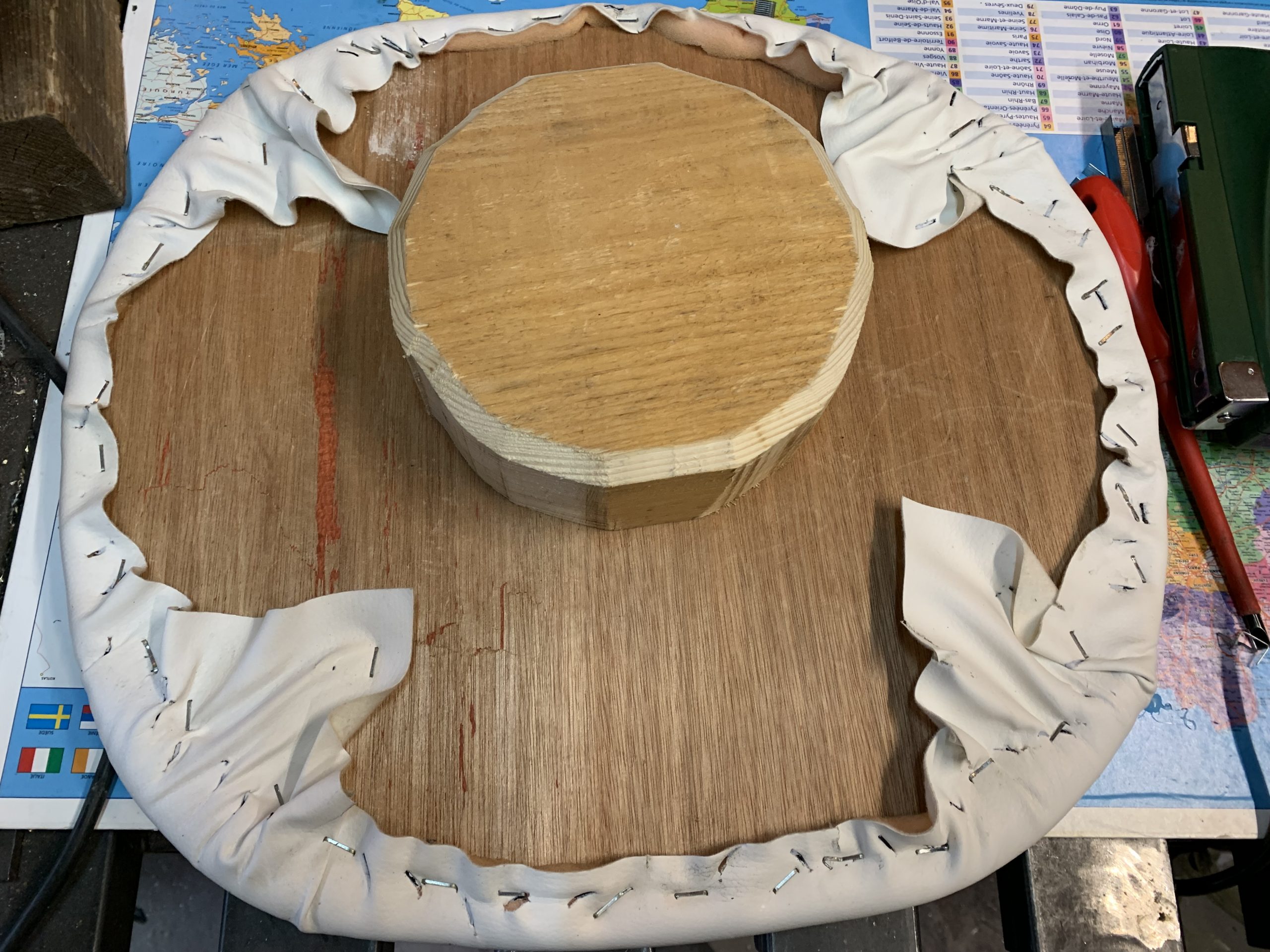 Et enfin j’ai agrafé le tissu et la mousse sur la planche.