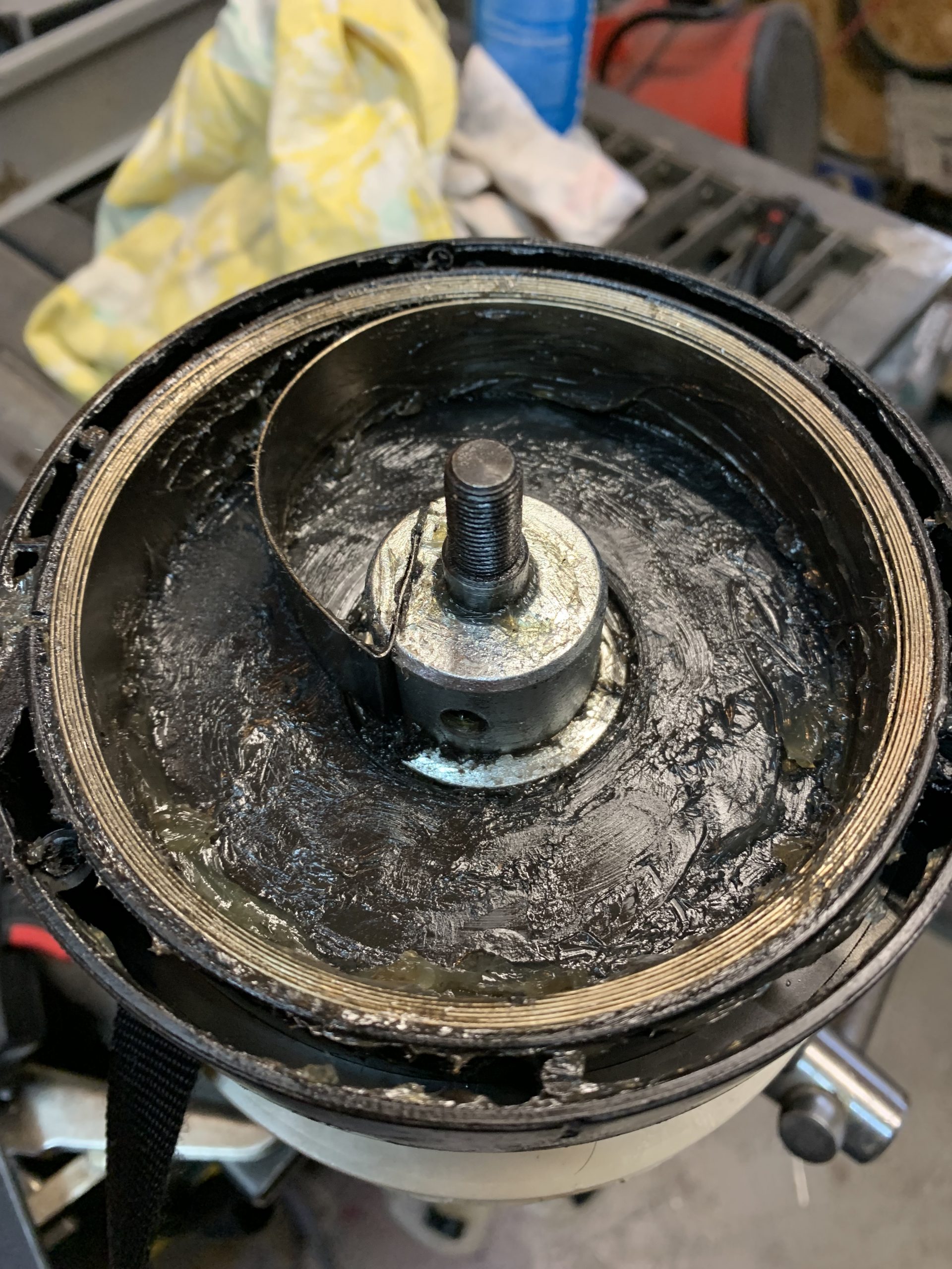 La forme est bien rentrée dans le logement, et j’ai pu lacher les pinces et remonter le tambour. J’ai essaye de le faire fonctionner et la sangle était enroulée à l’envers et en tirant le ressort est sorti de son logement et j’ai du le remettre … avec un peu plus de mal car il s’est un peu déformé.