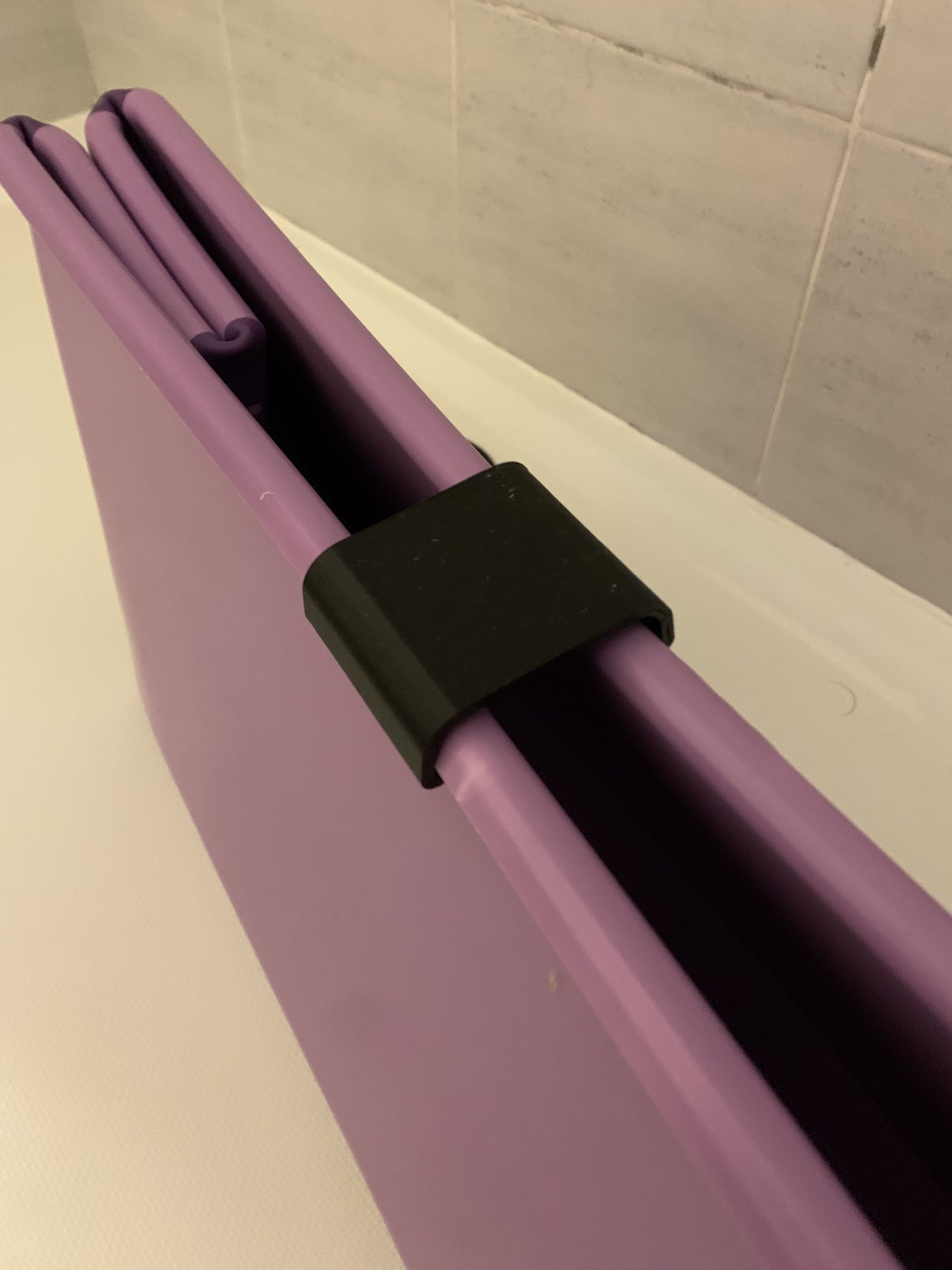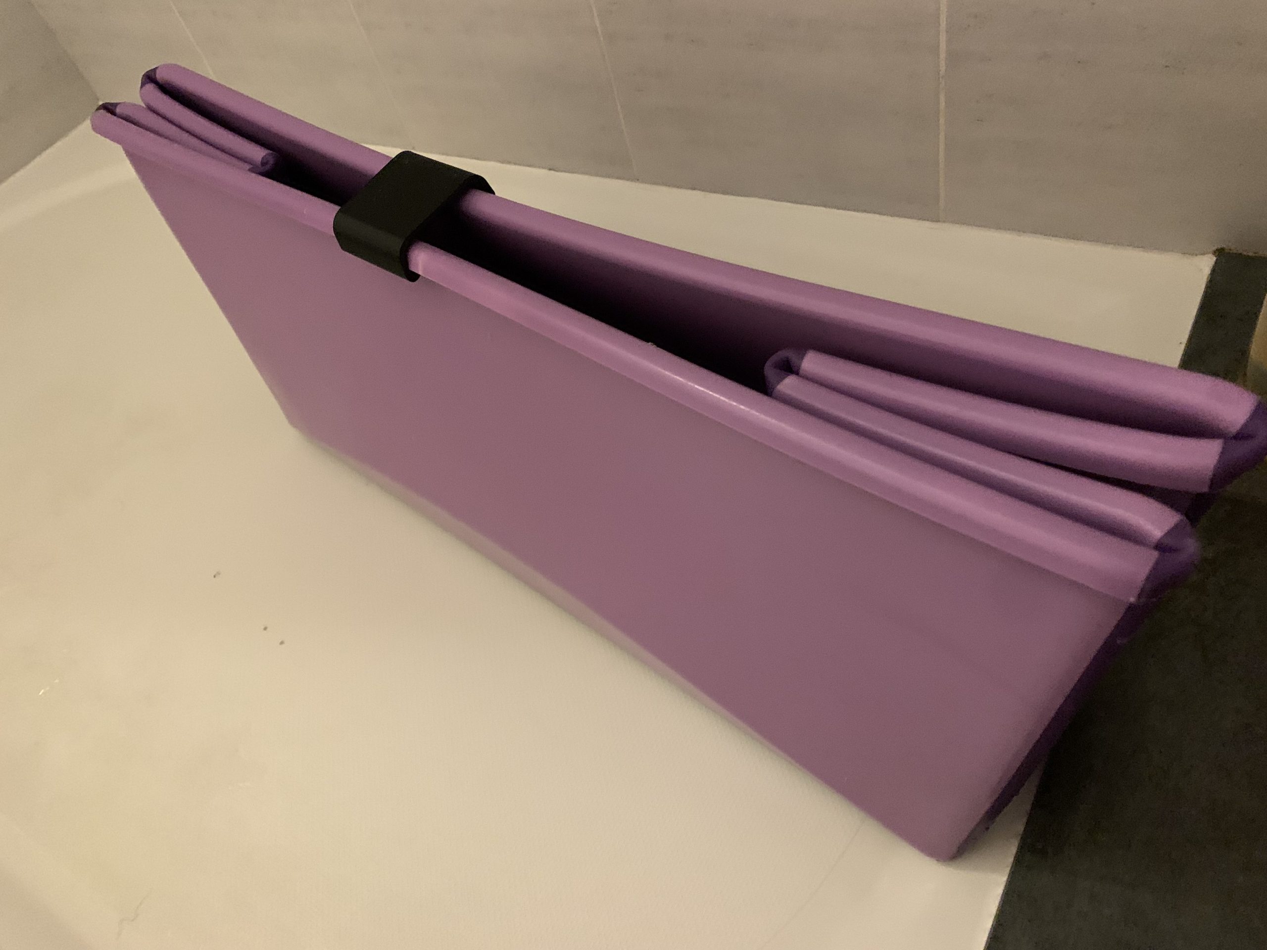 Chloé a une petite salle de bain et elle a achté sur LBC une baignoire pliable mais il manquait le clip pour la tenir fermée.