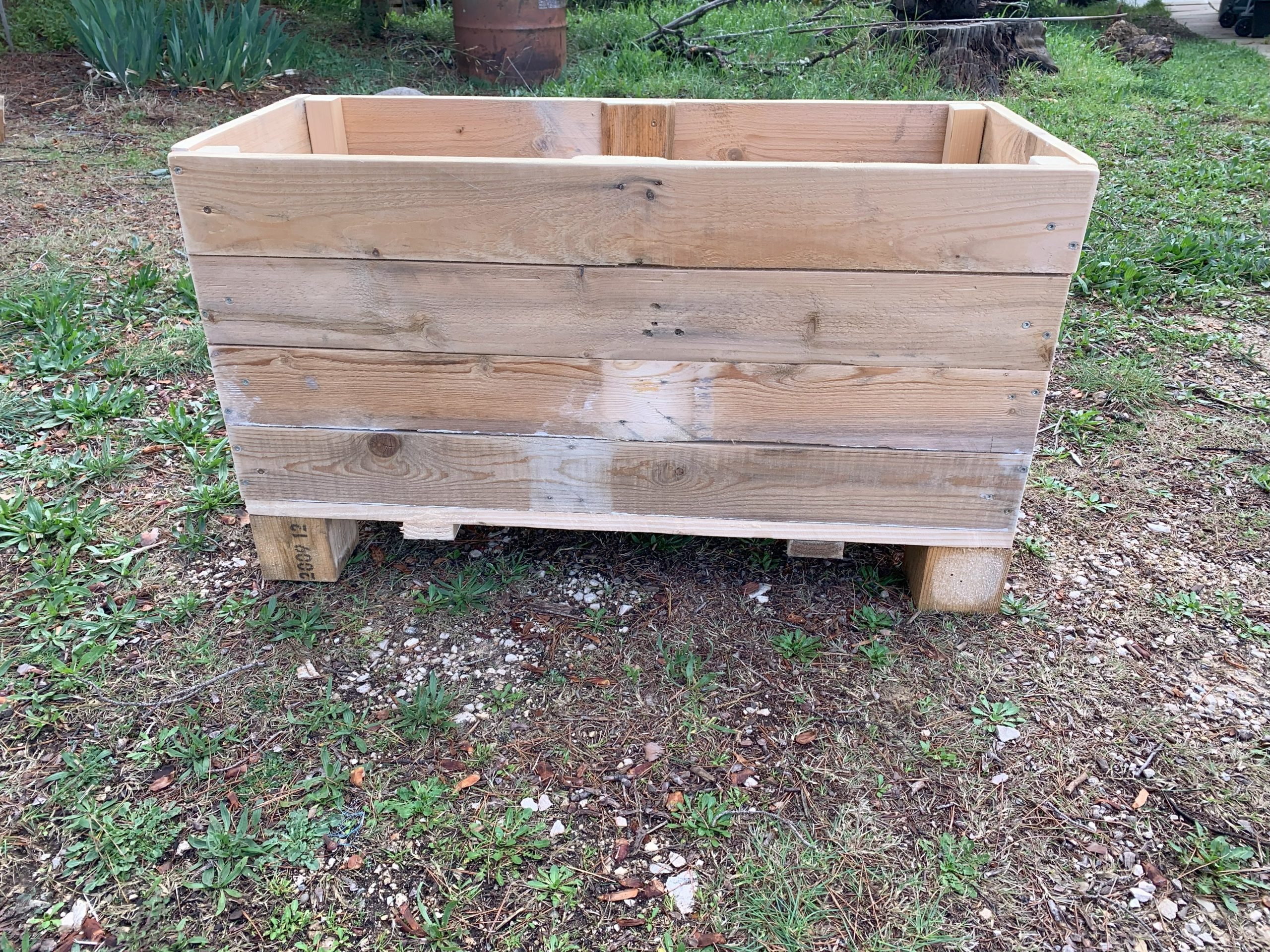 Pour celà elle avait besoin d’une jardinière, je lui en ai fabriqué une en bois de palettes.