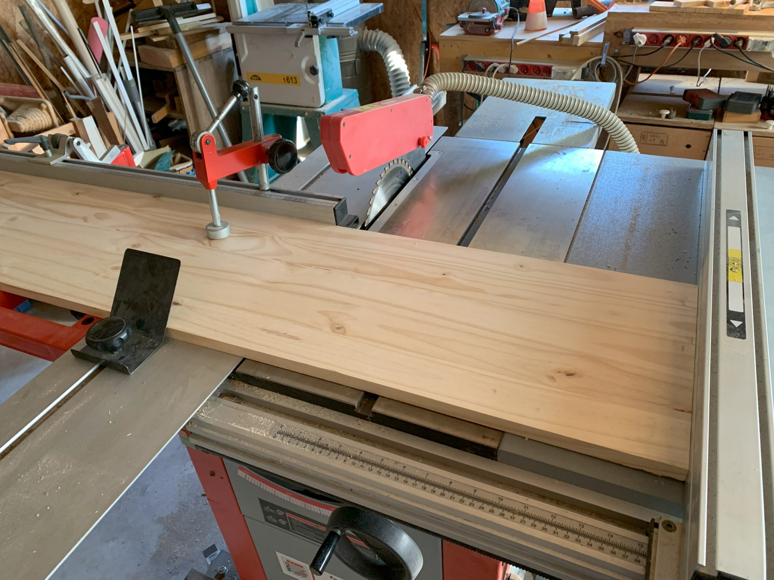 Pour couper les panneaux j’ai utilisé ma scie circulaire qui a un chariot coulissant, c’est facile et propre!