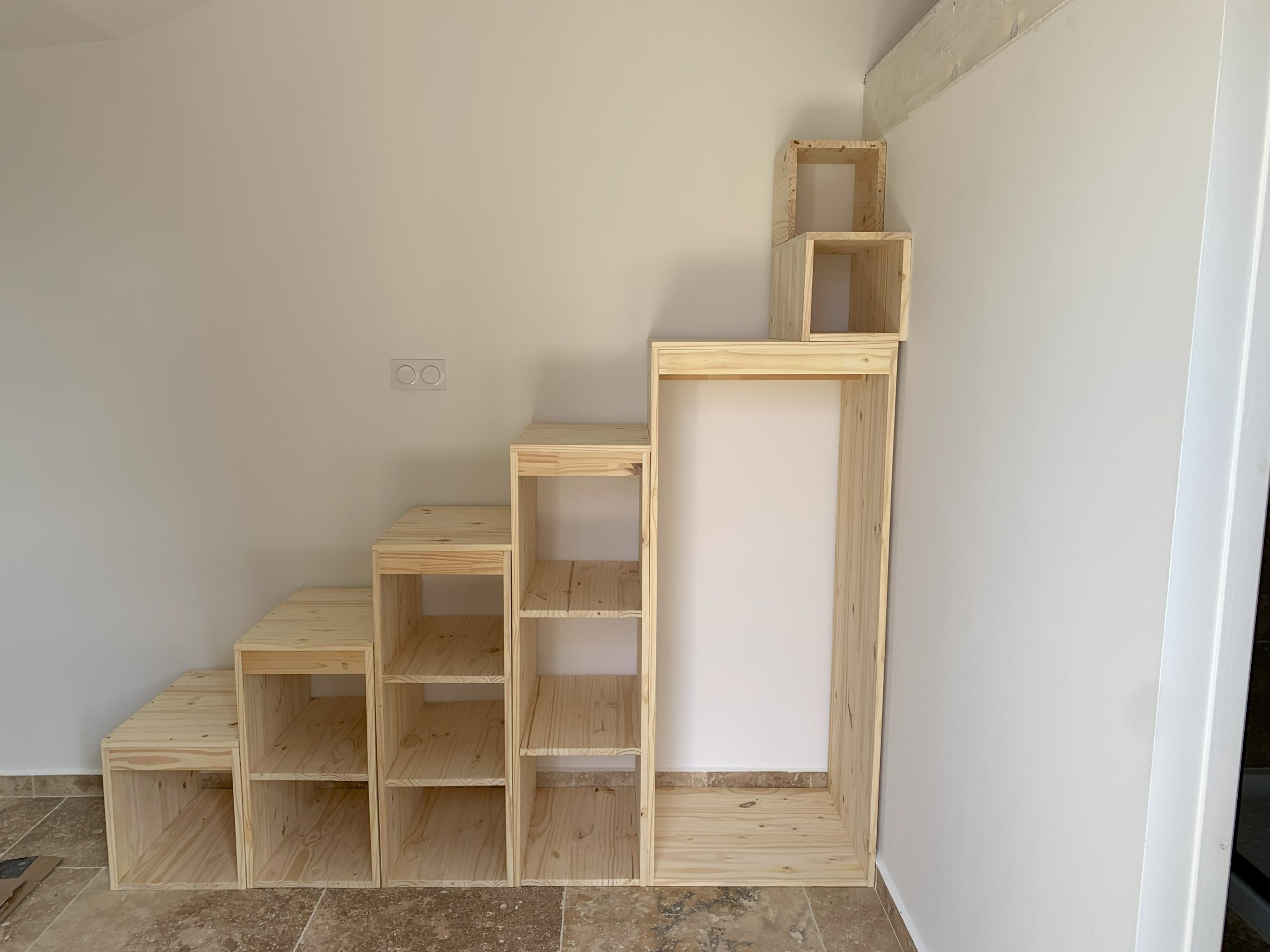 Pour finir d’accéder à la mezzanine, j’ai prévu 2 petites marches, ce sont 2 petits blocs.