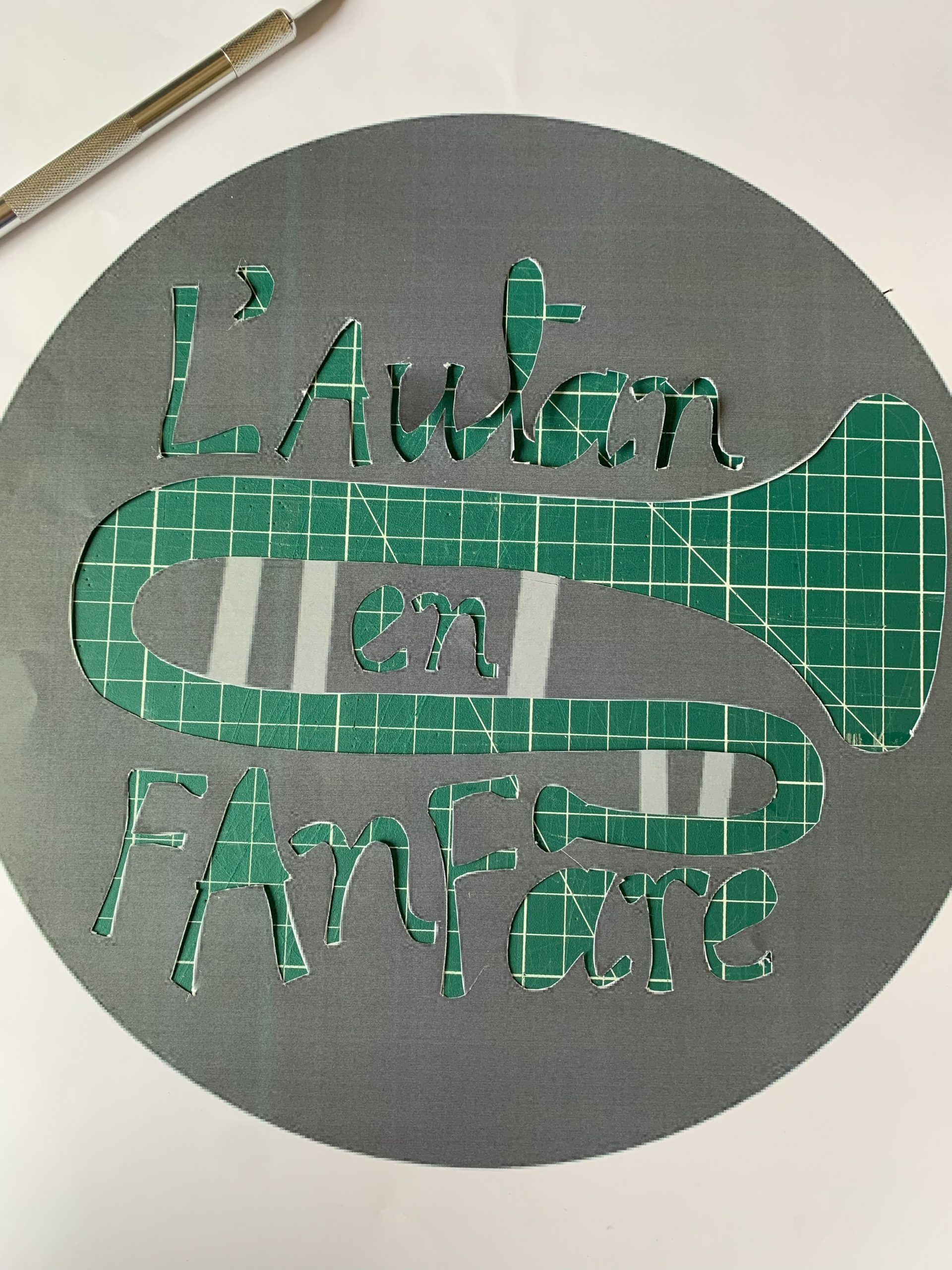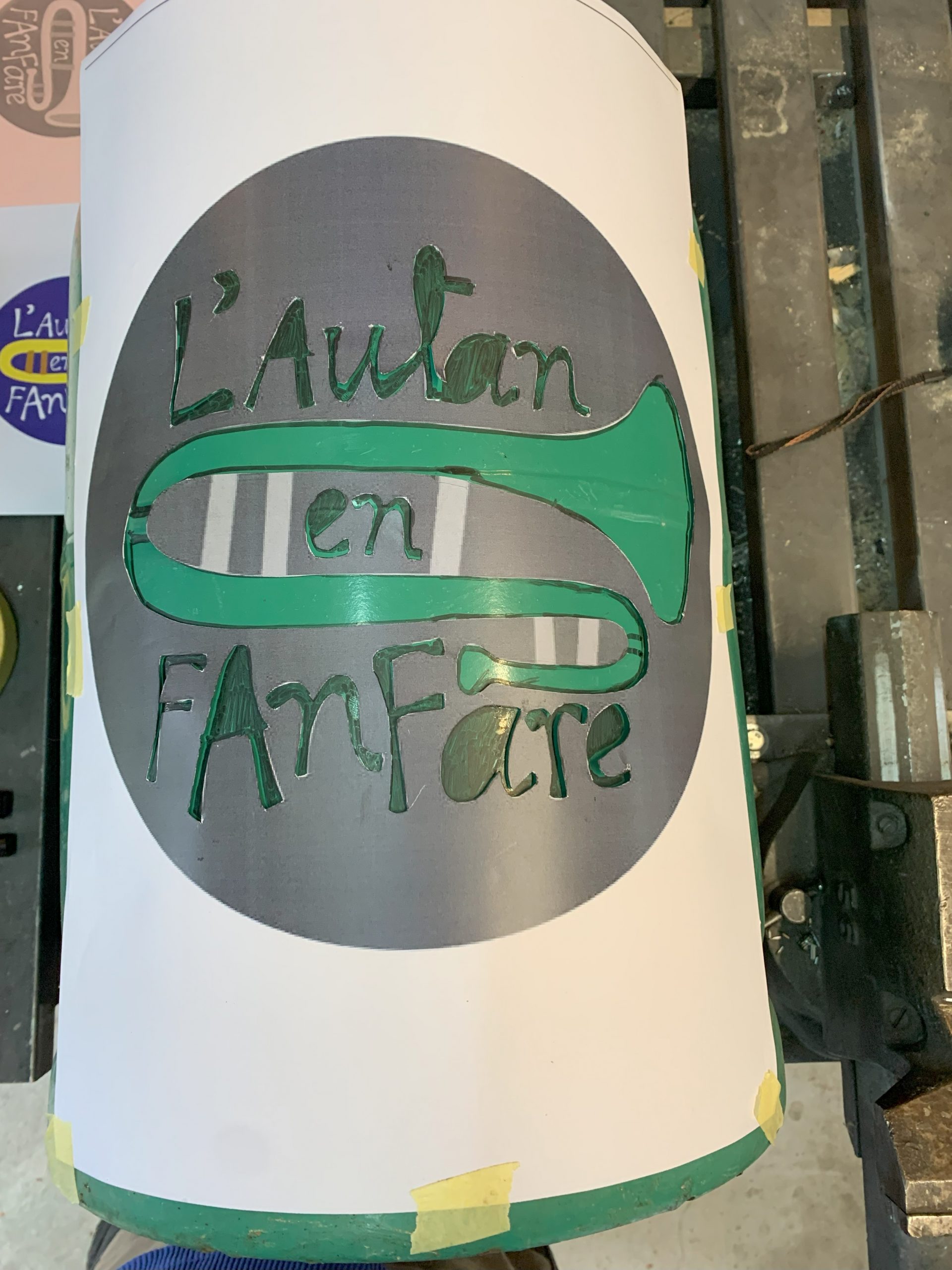J’ai commencé par imprimer leur logo en A3 et j’ai découpé les contours des motifs qui seront découpés sur la bouteille. Puis j’ai reporté le motif sur la bouteille.