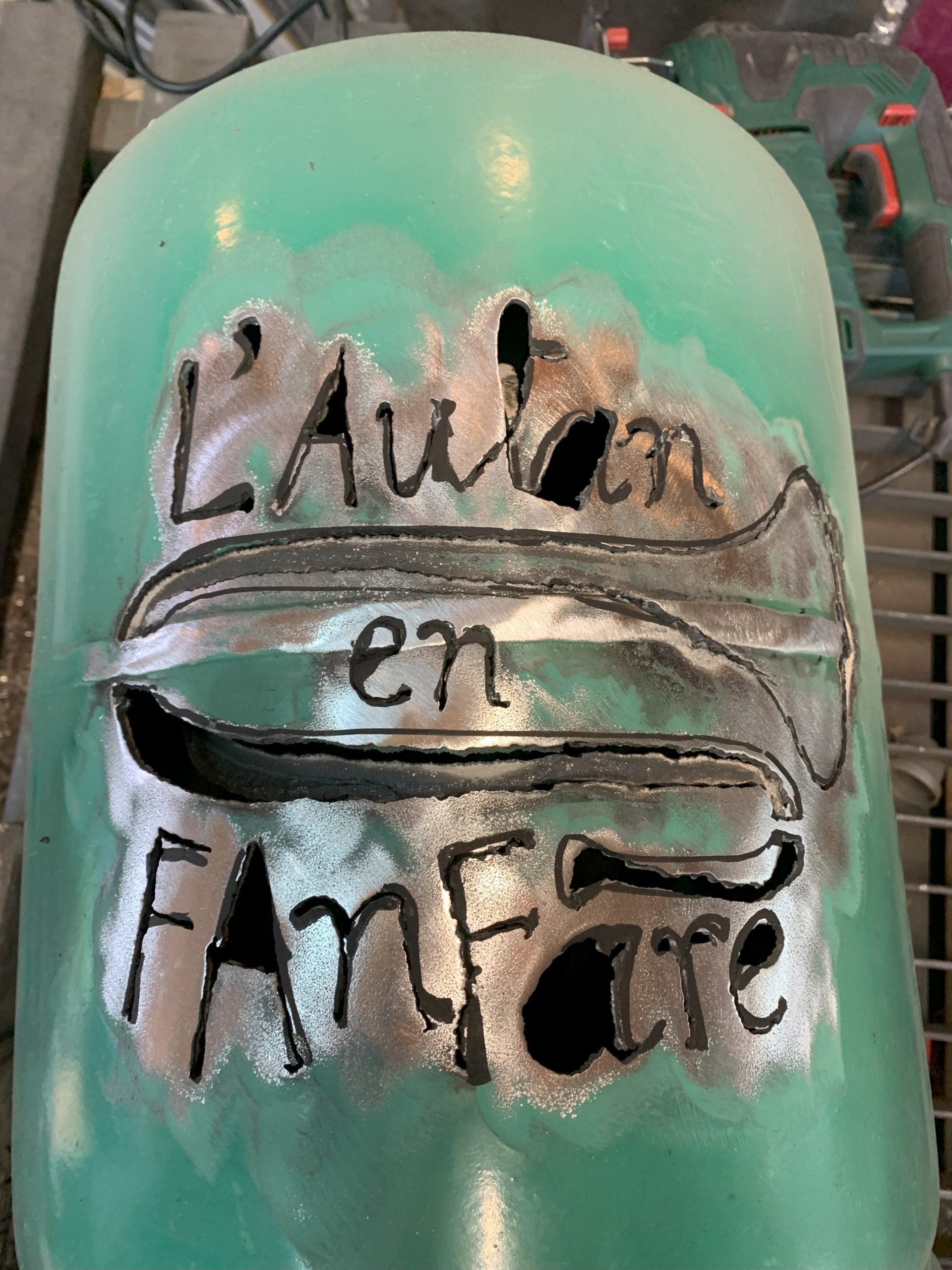 Je dois dire que ce n’est pas facile car on n’y voit pas très clair avec la lumiere de la torche et les lunettes de protection. De plus la peinture brule et on perd le tracé.
