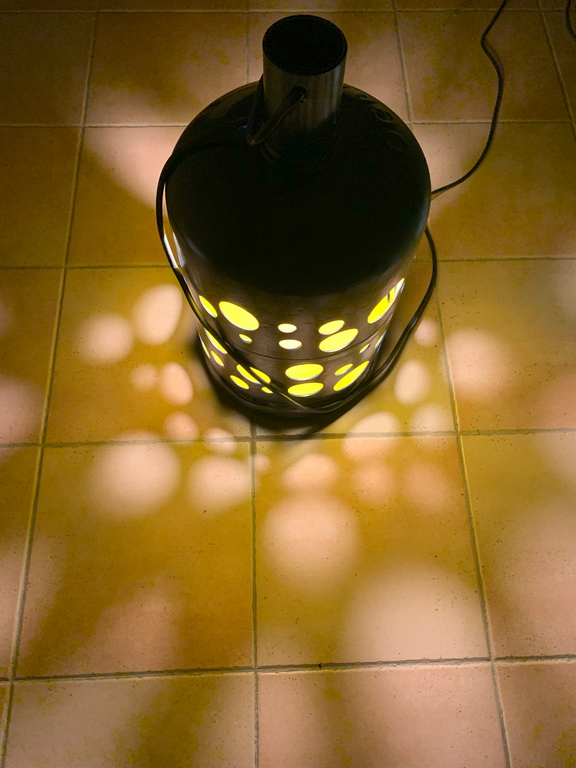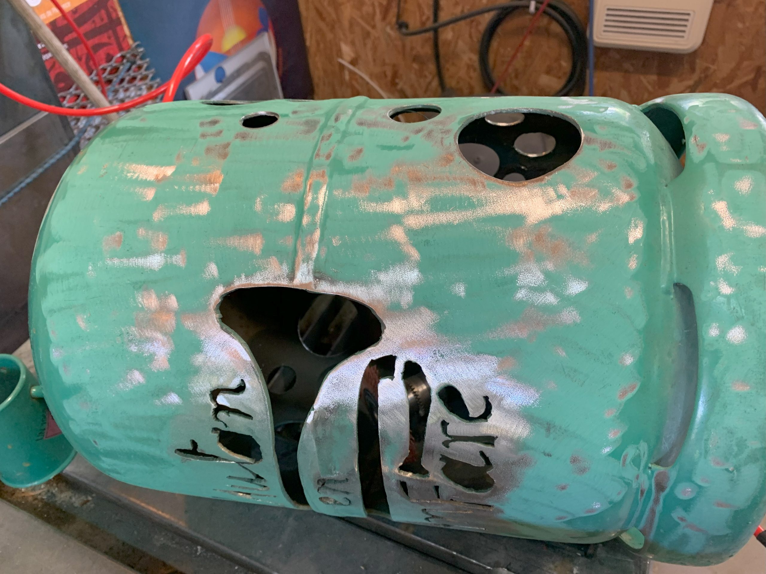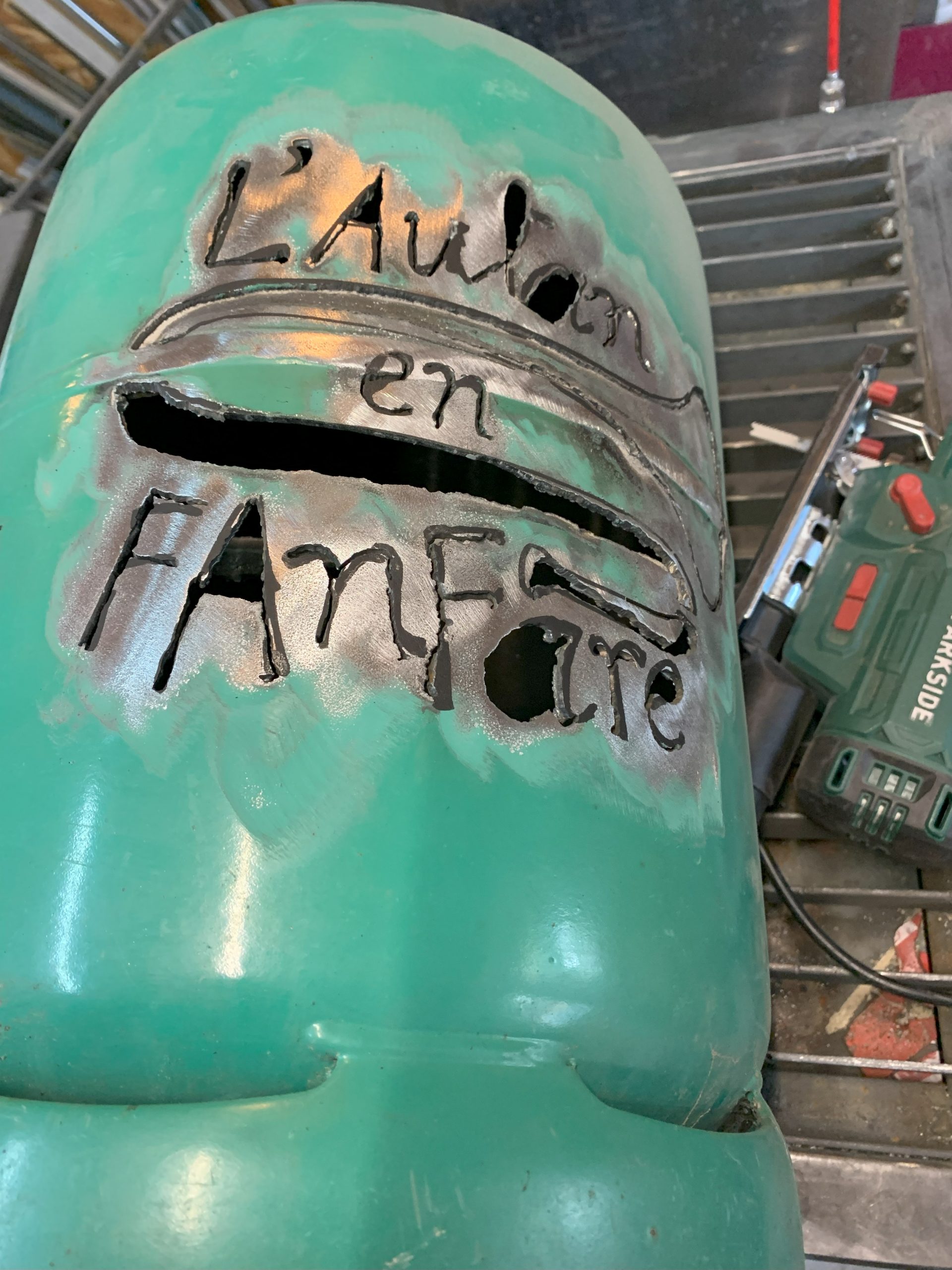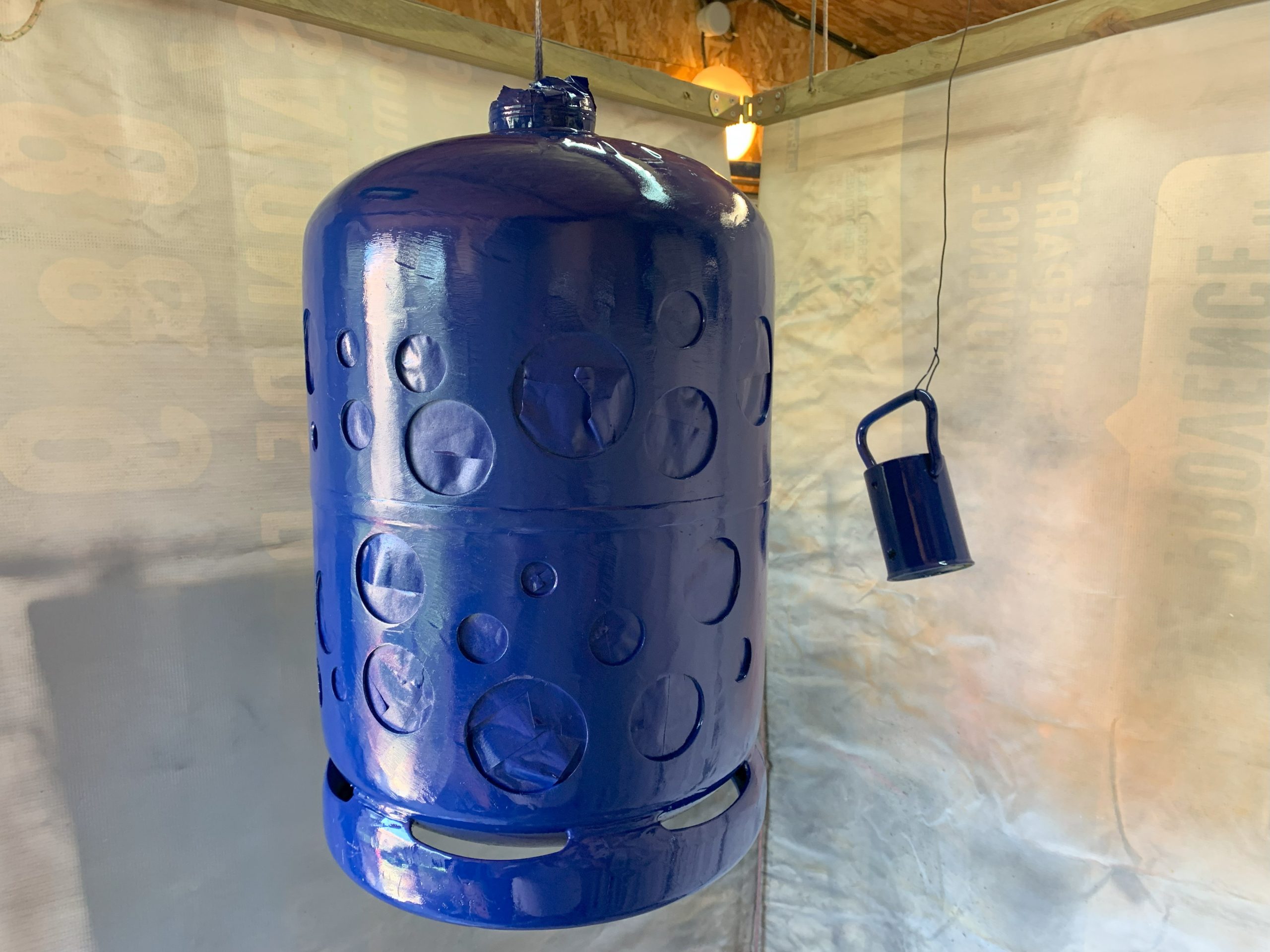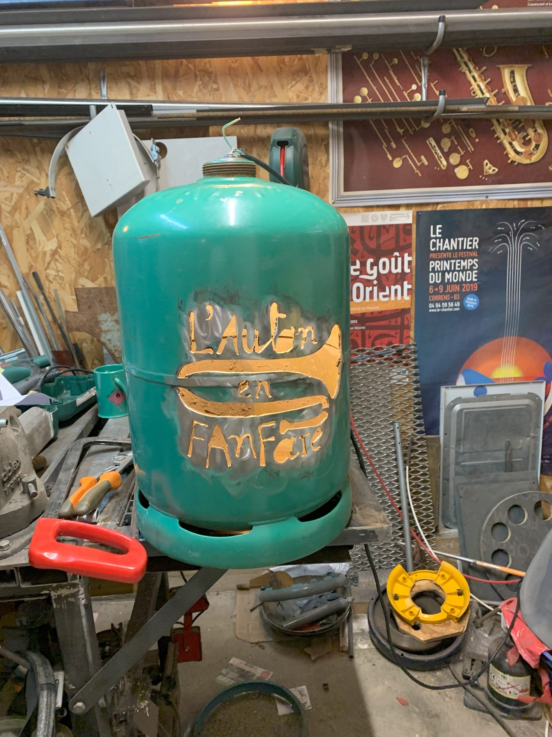 Pour remercier les organisateurs j’ai fabriqué une (autre ) lampe avec une bouteille de gaz en reproduisant leur logo.